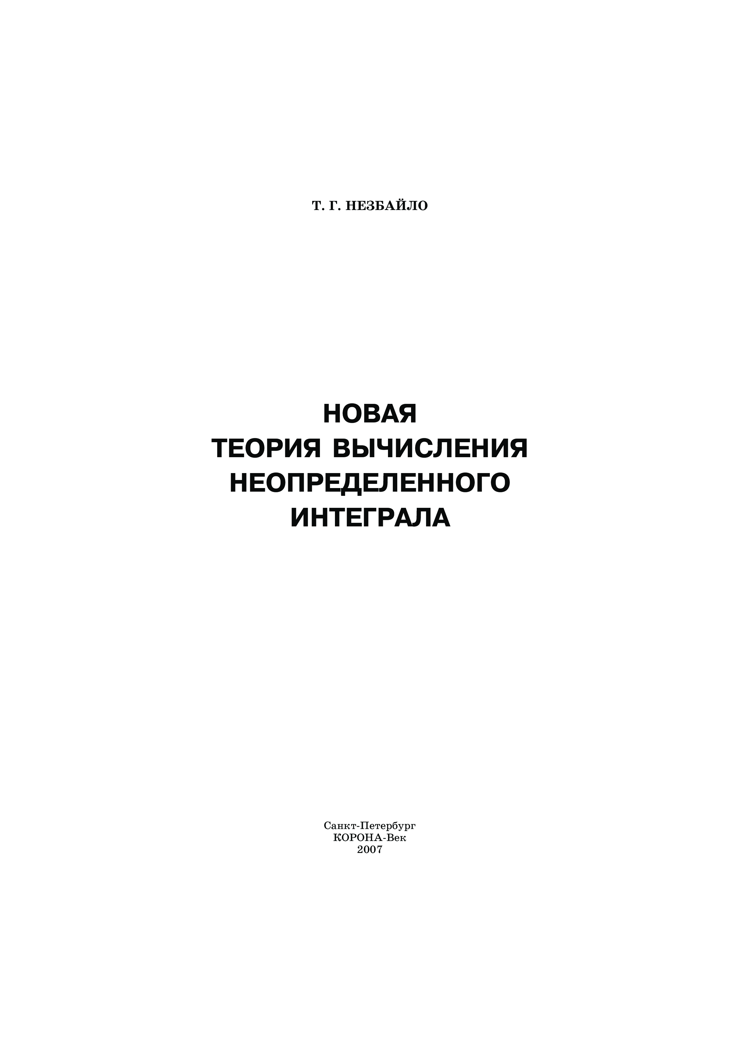 "Новая теория вычисления неопределенного интеграла" - читать интересную книгу автора (Незбайло Т.Г.)