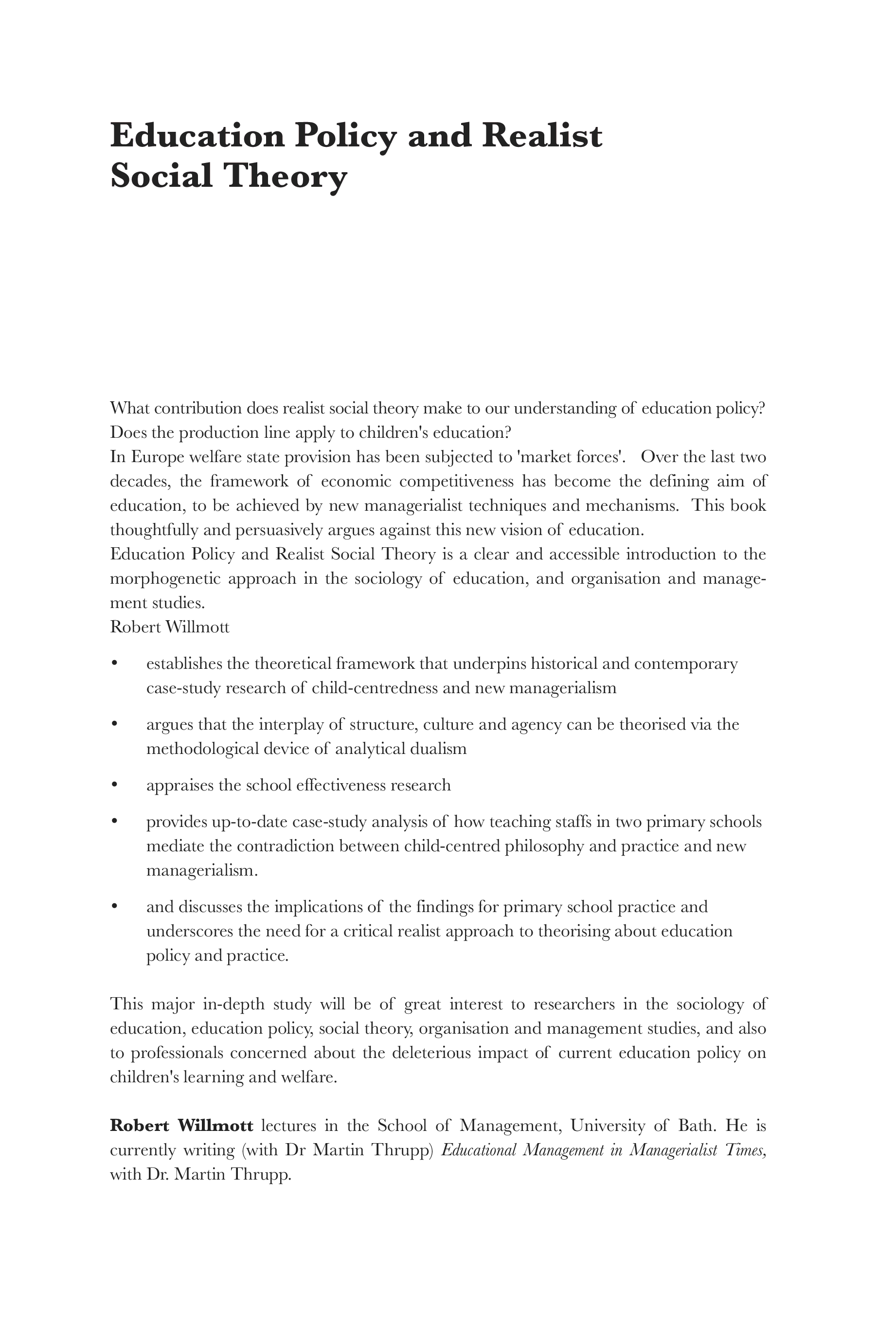 "Education Policy and Realist Social Theory: Primary Teachers, Child-Centred Philosophy and the New Managerialism (Routledge Studies in Critical Realism)" - читать интересную книгу автора (Robert Wilmott)