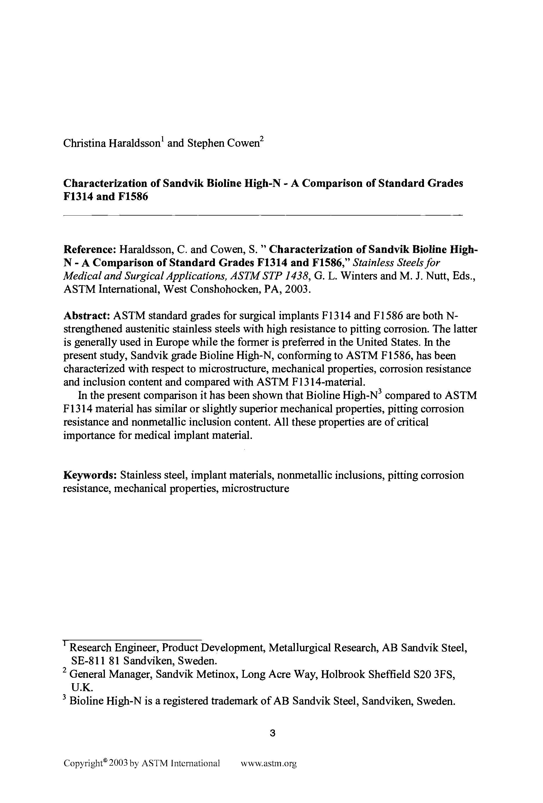 "Stainless Steels for Medical and Surgical Applications (ASTM Special Technical Publication, 1438)" - читать интересную книгу автора