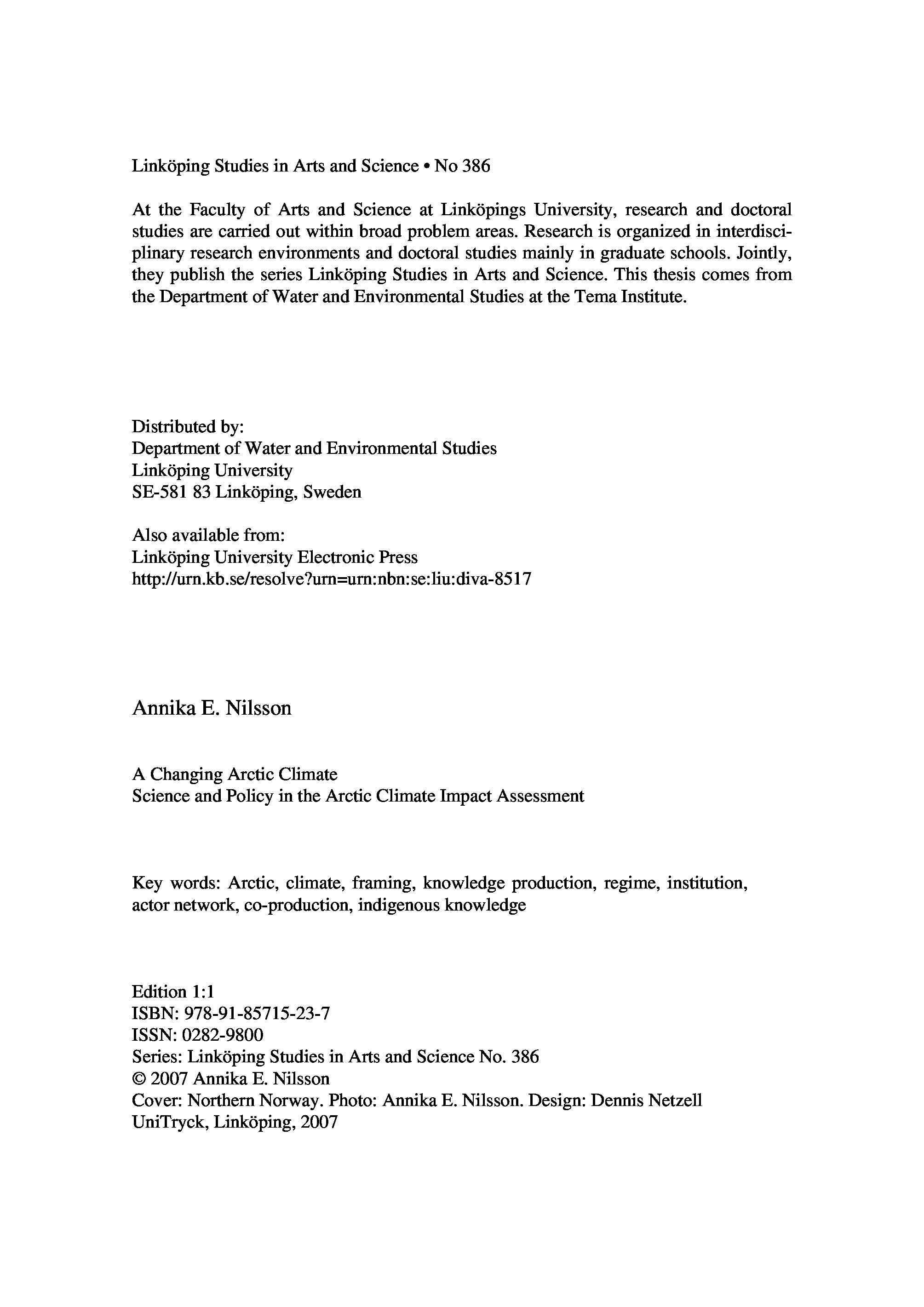"A changing Arctic climate : science and policy in the Arctic climate impact assessment" - читать интересную книгу автора (Annika E. Nilsson.)