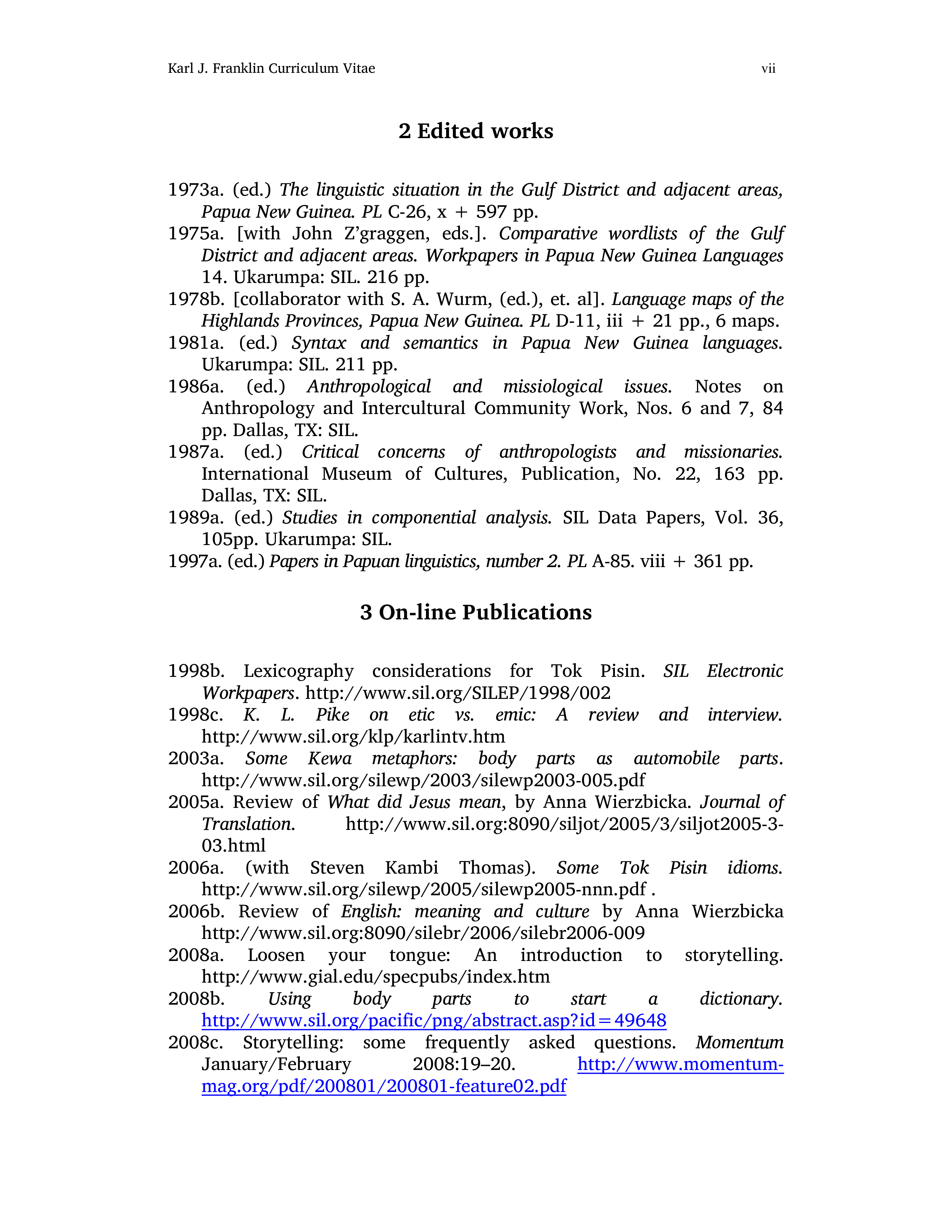 "A Mosaic of languages and cultures: studies celebrating the career of Karl J. Franklin" - читать интересную книгу автора (McElhanon, Kenneth A. and Reesink, Ger)