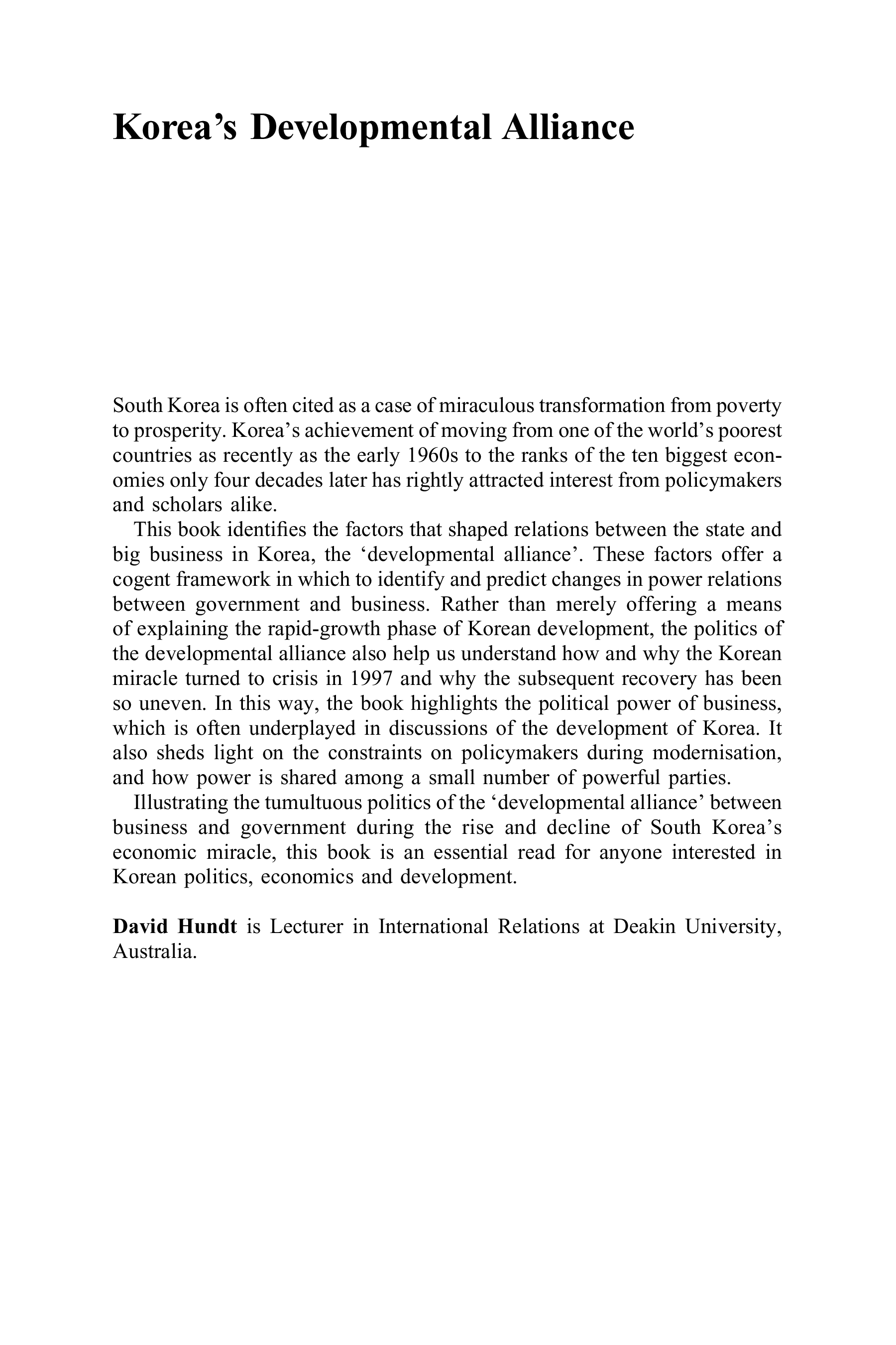 "Korea's Developmental Alliance: State, Capital and the Politics of Rapid Development (Routledge Advances in Korean Studies)" - читать интересную книгу автора