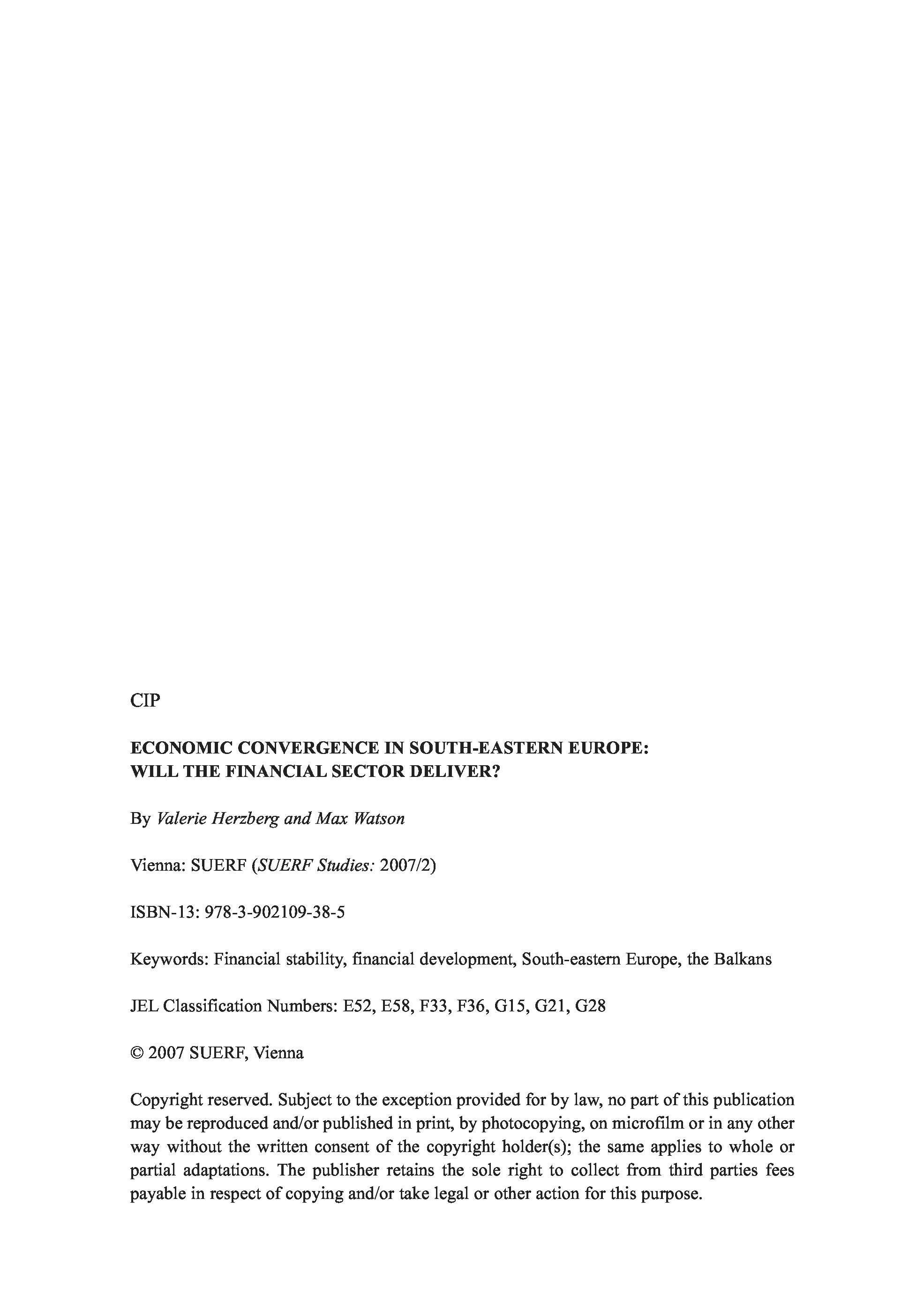 "Economic convergence in South-Eastern Europe : will the financial sector deliver?" - читать интересную книгу автора (By Valerie Herzberg and Max Watson.)