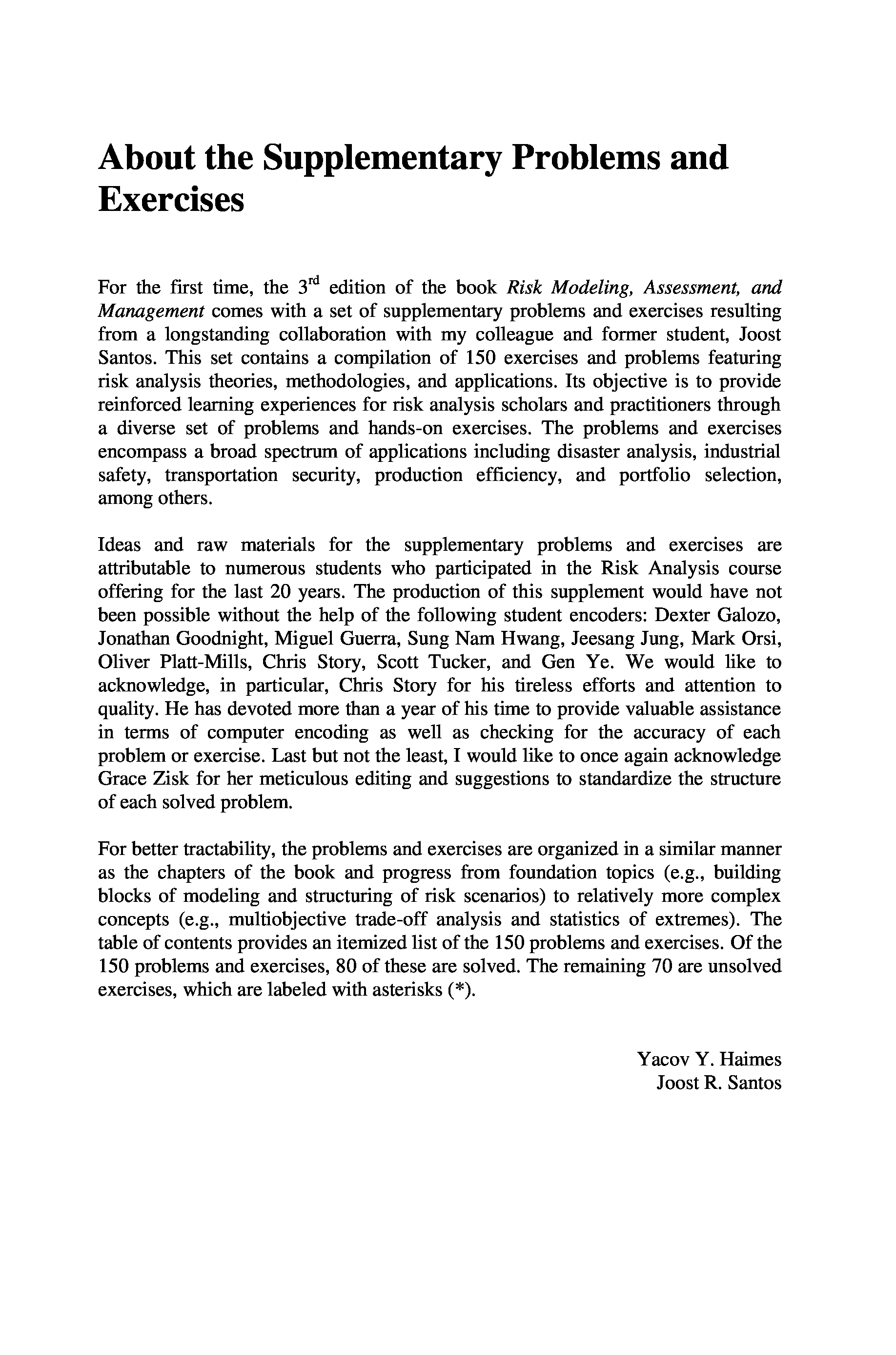 (Yacov Y. Haimes, Joost R. Santos)