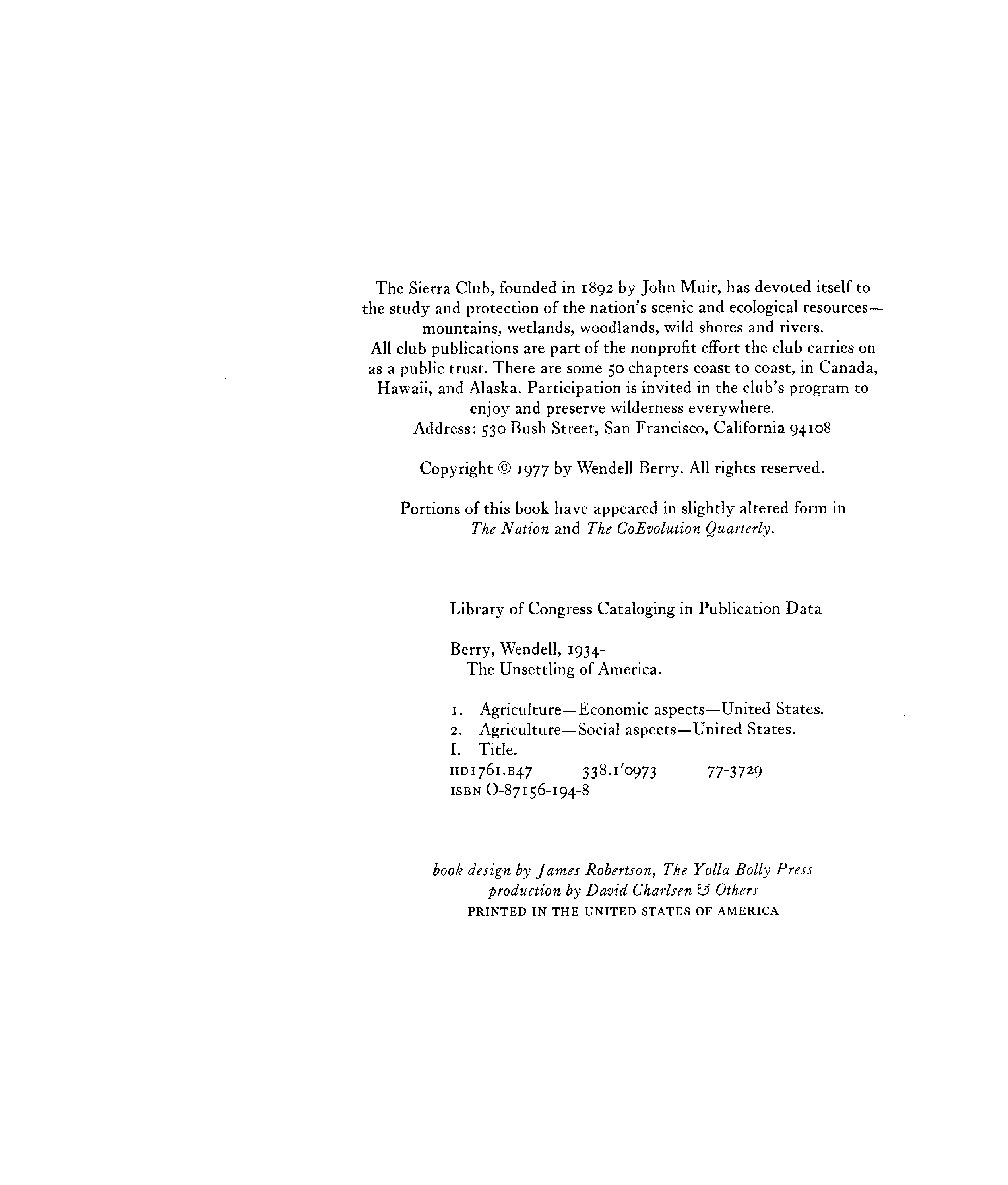 "The Unsettling of America: Culture and Agriculture" - читать интересную книгу автора