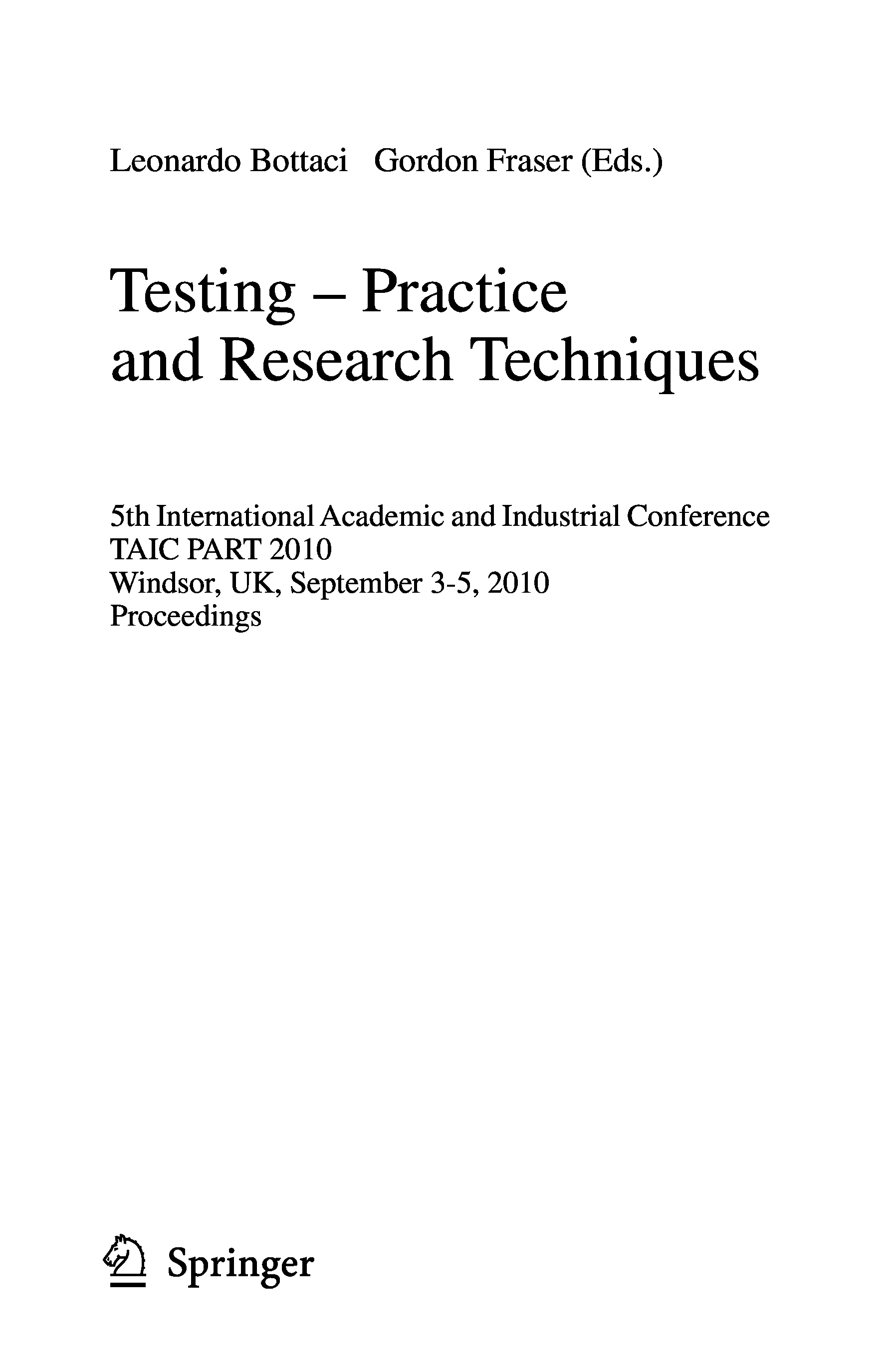 "Testing: Academic and Industrial Conference - Practice and Research Techniques: 5th International Conference, TAIC PART 2010, Windsor, UK, September ... Programming and Software Engineering)" - читать интересную книгу автора (Leonardo Bottaci, Gordon Fraser)
