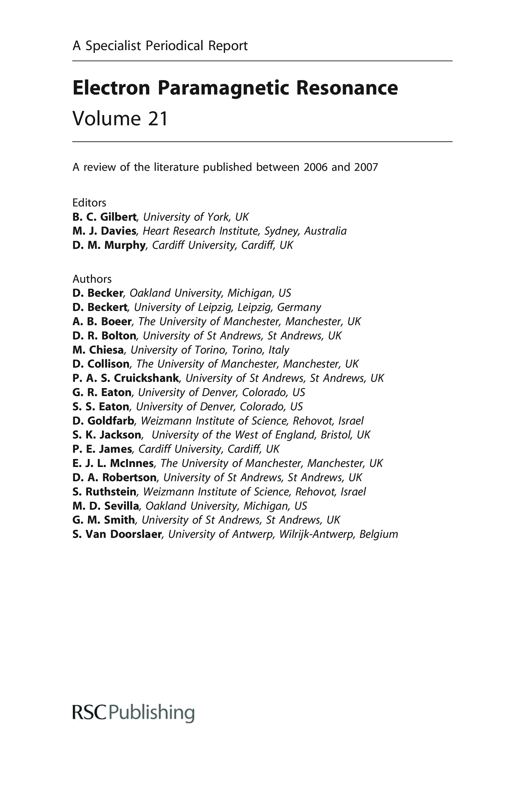 "Electron Paramagnetic Resonance: Volume 21 (Specialist Periodical Reports)" - читать интересную книгу автора