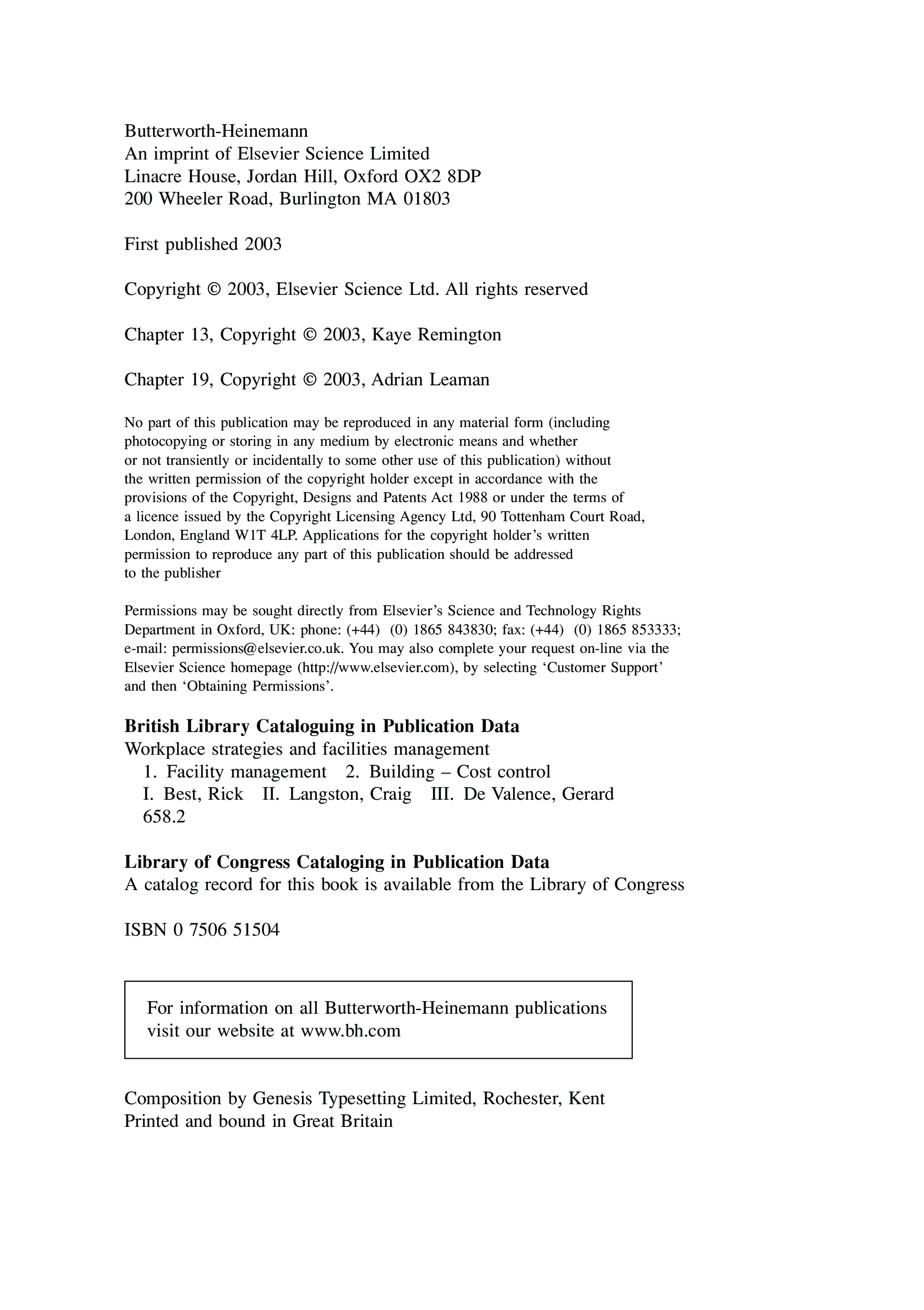 "Workplace Strategies and Facilities Management: Building in Value (Building Value)" - читать интересную книгу автора