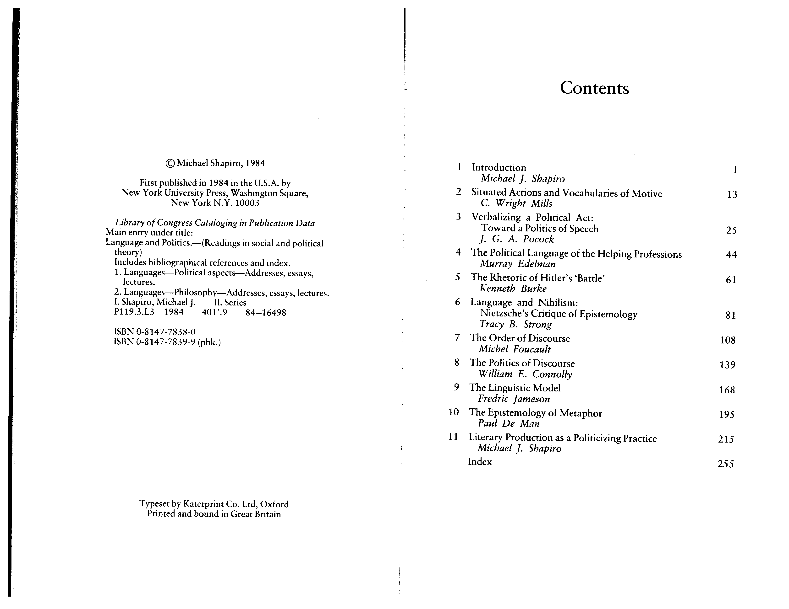 "Language and Politics (Readings in Social and Political Theory)" - читать интересную книгу автора (Michael J. Shapiro)