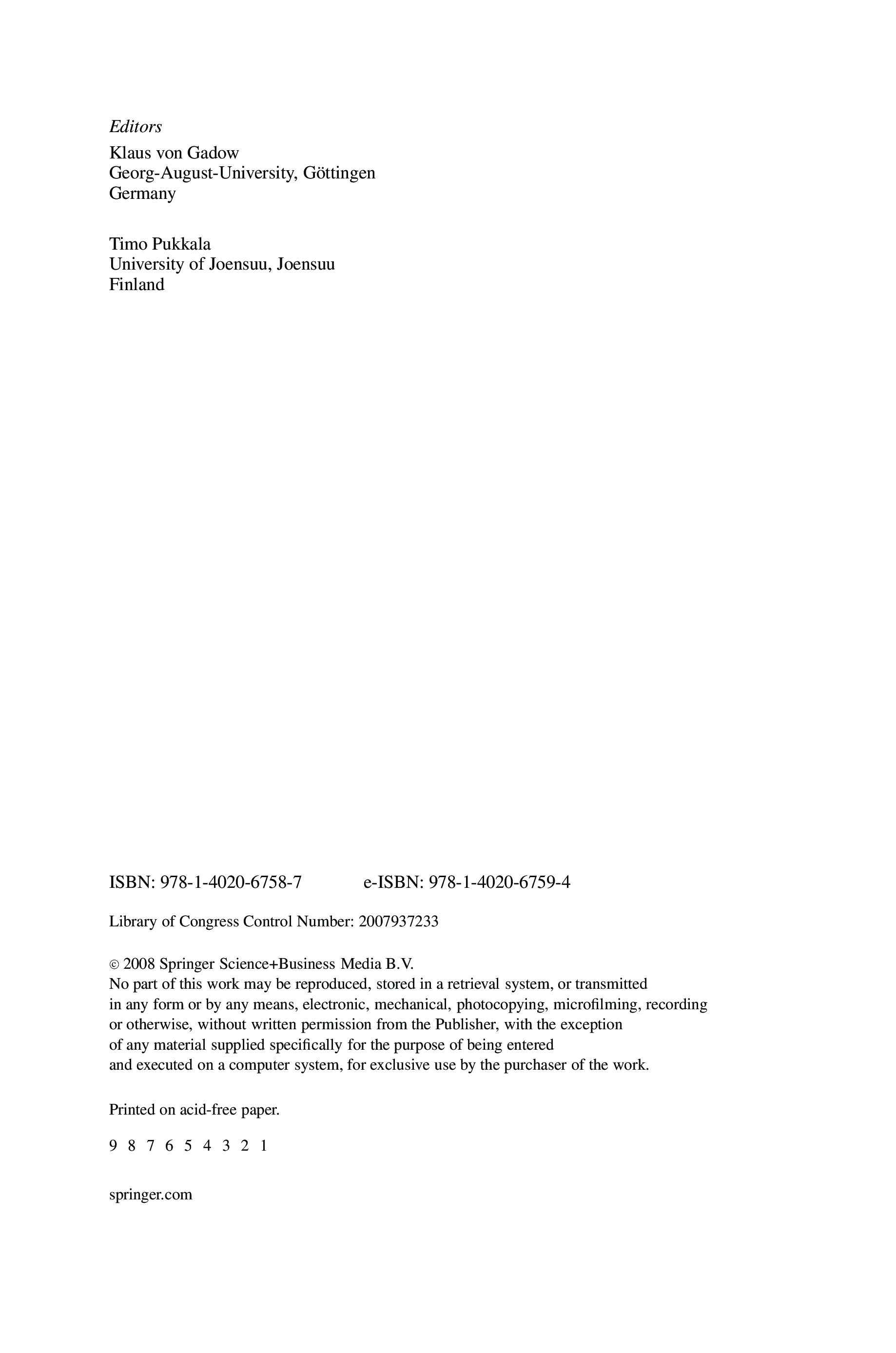 (K. von Gadow, T. Pukkala, Klaus von Gadow, Timo Pukkala)