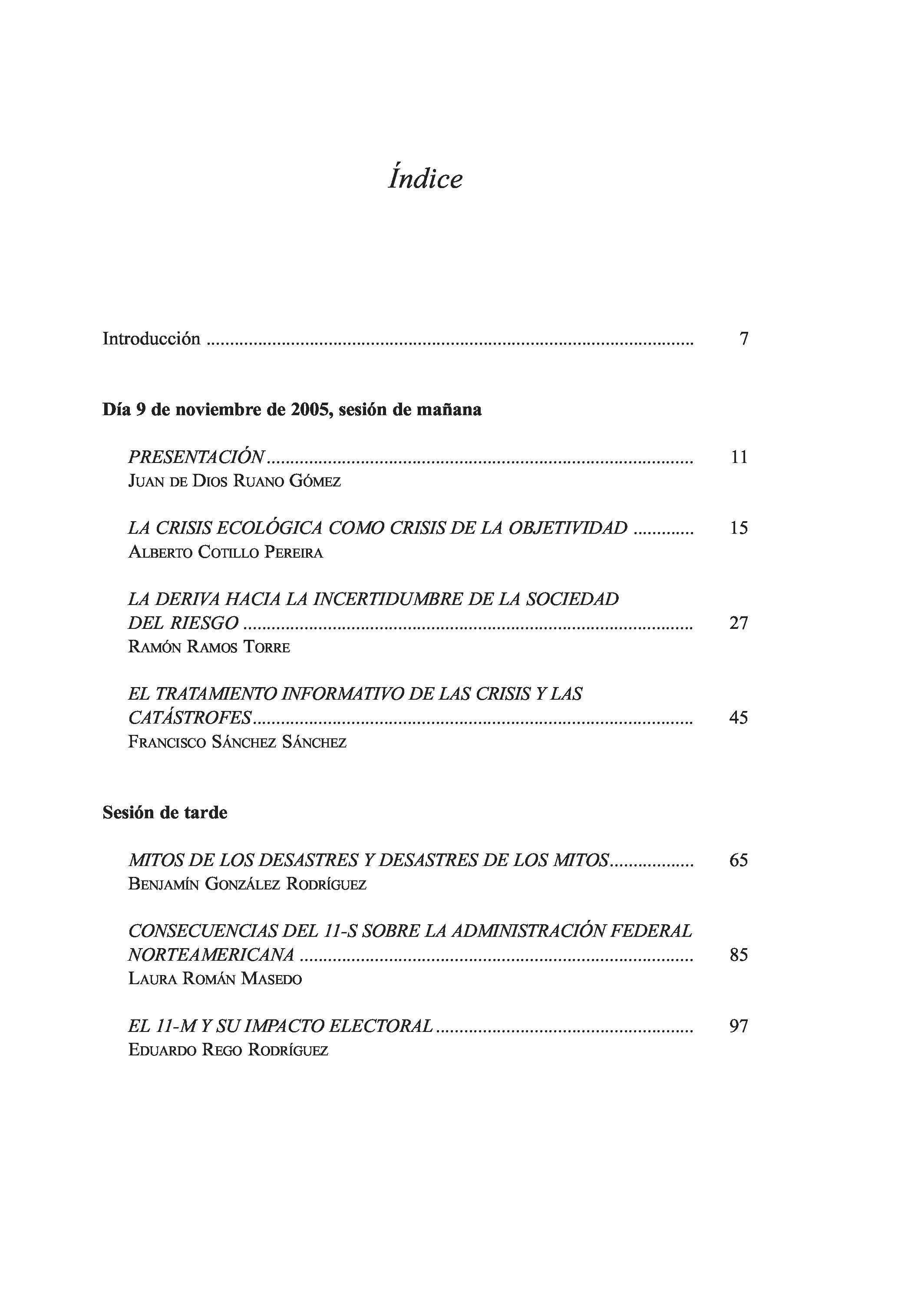 "I Jornadas sobre gestion de crisis: Mas alla de la sociedad del riesgo (Volume 84 of Cursos, congresos e simposios)" - читать интересную книгу автора