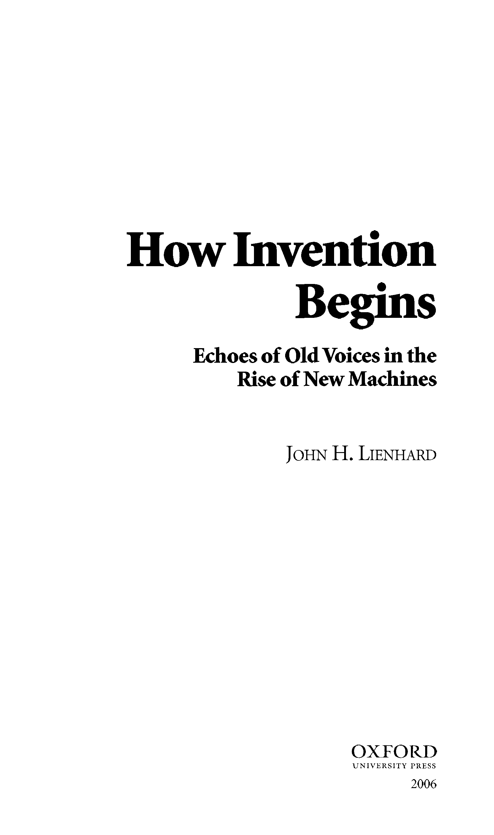 "How Invention Begins: Echoes of Old Voices in the Rise of New Machines" - читать интересную книгу автора (John H. Lienhard)