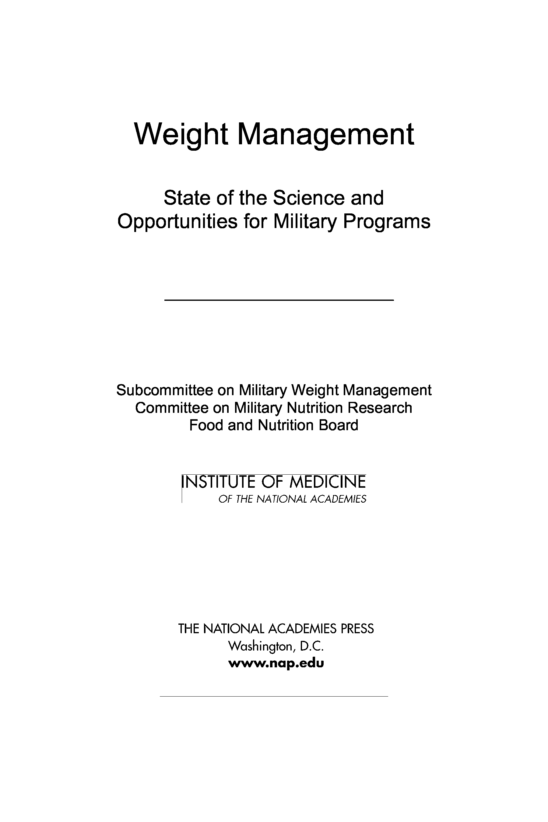(Subcommittee on Military Weight Management, Committee on Military Nutrition...)