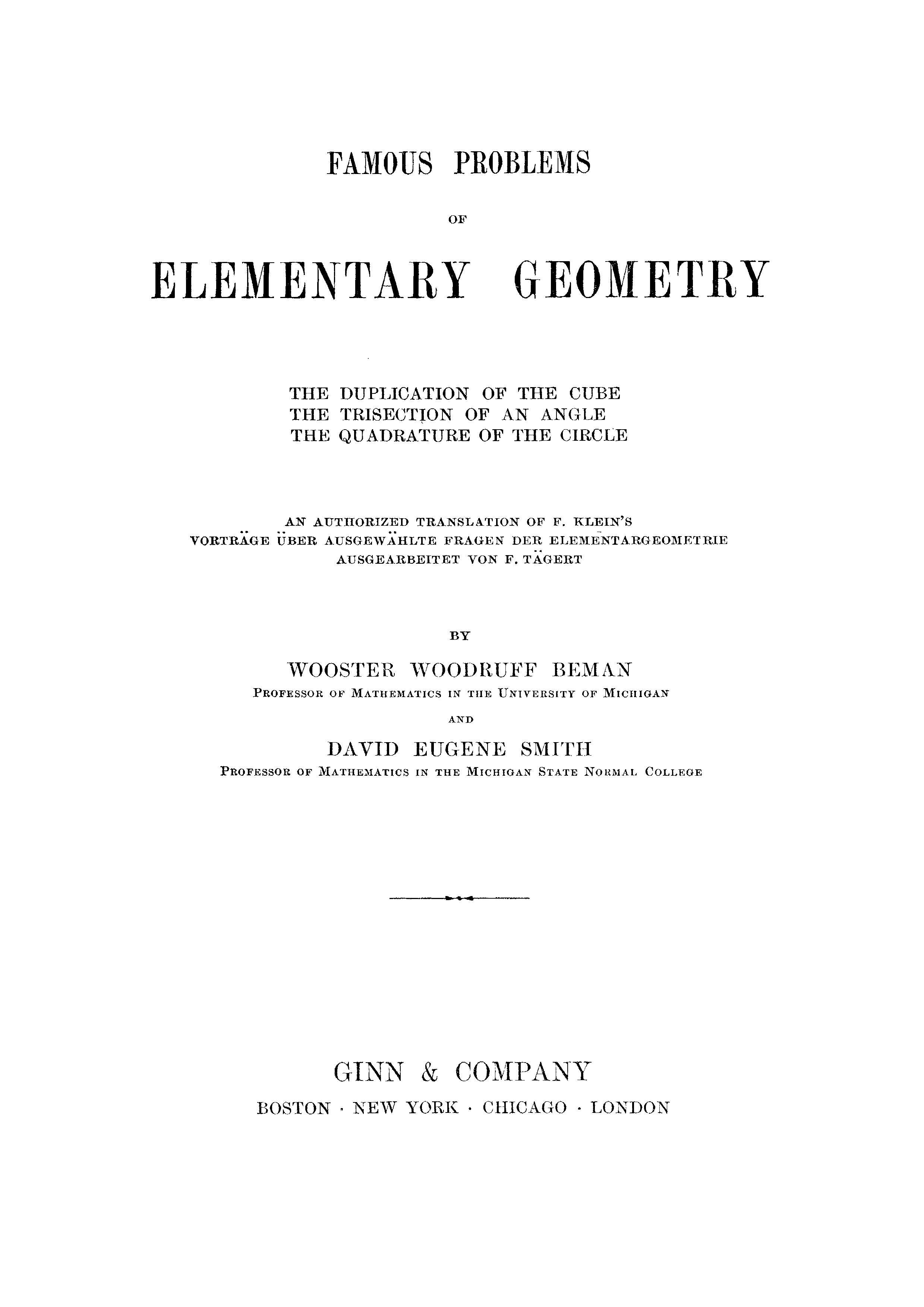 "Famous Problems of Elementary Geometry: The Duplication of the Cube, the Trisection of an Angle, the Quadrature of the Circle" - читать интересную книгу автора