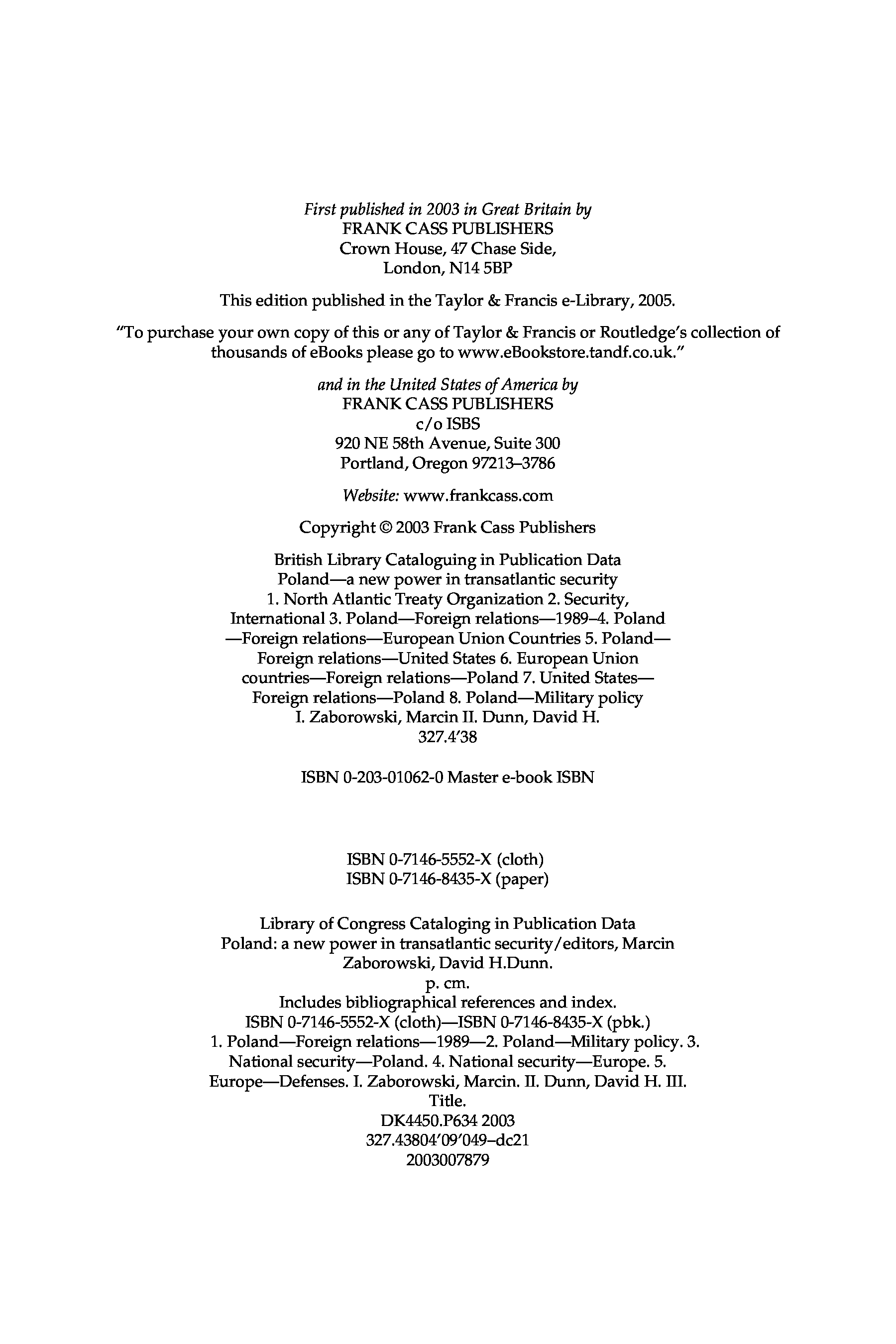 "Poland - a New Power in Transatlantic Security: A New Power in Transatlantic Security" - читать интересную книгу автора (David H. Dunn)