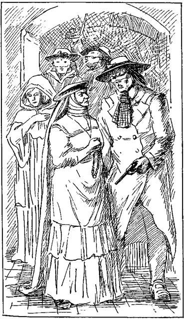 — Как зовут тебя, брат мой? Голос твой мне очень знаком, но ночь так темна, что я не могу разглядеть твое лицо. «Надеюсь, что ты и не увидишь его», — подумал Саладо, и громко прибавил: — Я — сеньор Темиладо, рыбак, который держит трактир на пристани Платерос. — А-а! Узнаю тебя, брат мой. Что же тебе надо? Говори поскорее. — Ах, сестра! Моя жена и двое моих детей заболели. Достойный отец, францисканец, прислал меня попросить у вас три бутылки вашей чудотворной воды. Мы должны заметить, что в Мексике каждый монастырь приготовляет свою чудотворную воду, рецепт который старательно скрывается; вода эта, как говорят, излечивает все болезни, поэтому, понятно, стоит очень дорого, и монастырский доход значительно увеличивается. — Христос мой! — воскликнула старуха, у которой глаза разгорелись при таком непомерном требовании. — Три бутылки! — Да, сестра. Я прошу у тебя позволения войти присесть; я шел так быстро, болезнь жены и детей так встревожила меня, что я едва стою на ногах. — Бедный человек! — воскликнула сострадательная привратница. — Да, сестра, ты окажешь действительное благодеяние. — Сеньор Темиладо, осмотритесь, прошу вас, хорошенько, нет ли кого еще на улице, мы живем в такое дурное время, что должны быть очень осторожны. — Никого нет, сестра, — ответил старик, делая знак разбойникам быть готовыми. — Тогда я открываю. — Бог вознаградит тебя за это, сестра. — Аминь! — сказала она набожно. Послышалось бряцанье ключа в замке, потом визг отодвинутой задвижки, и дверь наконец приоткрылась. — Входи скорей, брат мой, — проговорила монахиня. Но Саладо осторожно попятился назад, и на его месте возник дон Торрибио. Он тотчас же бросился на монахиню, не дав ей времени разглядеть себя, схватил ее за горло и, сдавив его, как щипцами, сказал ей на ухо: — Только крикни, старая колдунья, тут тебе и конец! Испуганная таким внезапным нападением, видя перед собой человека в маске, старуха лишилась чувств. Дон Торрибио, видя, что она ничем не может быть им полезна, приказал завязать ей рот и крепко связать, потом, оставив двоих разбойников караулить двери, он взял у привратницы связку ключей и пошел с остальными товарищами к строению, в котором жили монахини. Дону Торрибио нужно было пройти в келью игуменьи, а ее нелегко было найти, поэтому он приказал разбойникам поднять в строении шум. Разбойники, войдя в коридор, стали кричать, произносить проклятия, бросались в разные двери, везде рыли, стучали, грабили. Монахини, привыкшие к спокойствию и тишине, проснулись от этого шума и, как белые голуби, с испугом бросились к келье игуменьи, которая, разделяя их ужас и окруженная ими, открыла дверь в коридор, из которого слышались страшные проклятия. Внезапно она увидела толпу замаскированных демонов, кричавших, потрясавших всевозможным оружием. Но, прежде чем она успела вскрикнуть, дон Торрибио бросился к ней, и тотчас весь шум утих. — Не шумите, — сказал он, — мы не хотим причинить вам зло; напротив, мы пришли поправить зло, сделанное вами. При виде стольких мужчин в масках все монахини онемели от ужаса. — Чего вы хотите от меня? — прошептала игуменья дрожащим голосом. — Сейчас вы это узнаете, — ответил дон Торрибио и обратился к одному из своих людей: — Подай серную светильню. Разбойник молча подал ему то, что он просил. — Теперь слушайте внимательнее, сеньора. Вчера одна из 