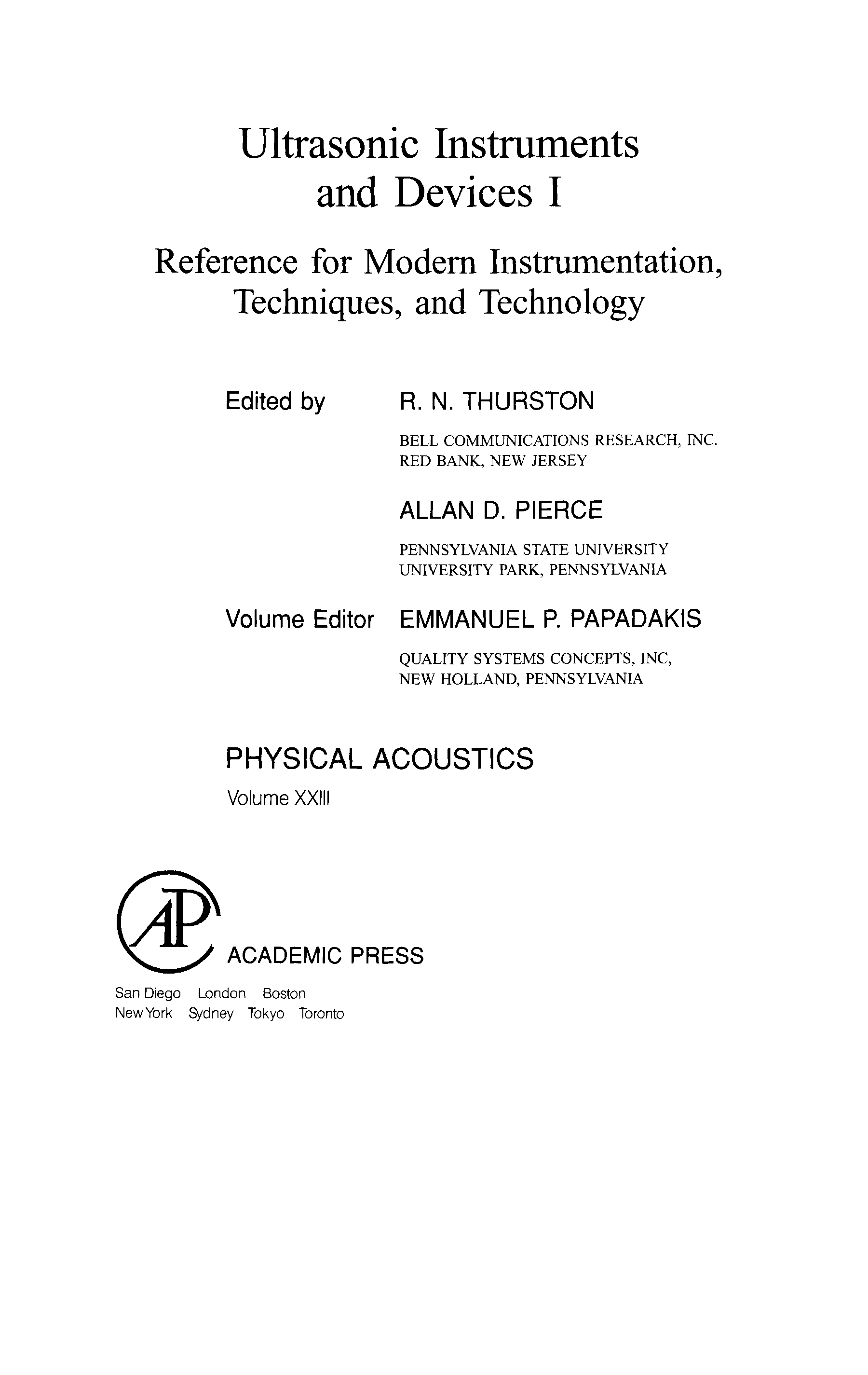 "Reference for Modern Instrumentation, Techniques, and Technology: Ultrasonic Instruments and Devices I, Volume 23: Ultrasonic Instruments and Devices I (Physical Acoustics)" - читать интересную книгу автора (Emmanuel P. Papadakis, R. N. Thurston, Allan D. Pierce)