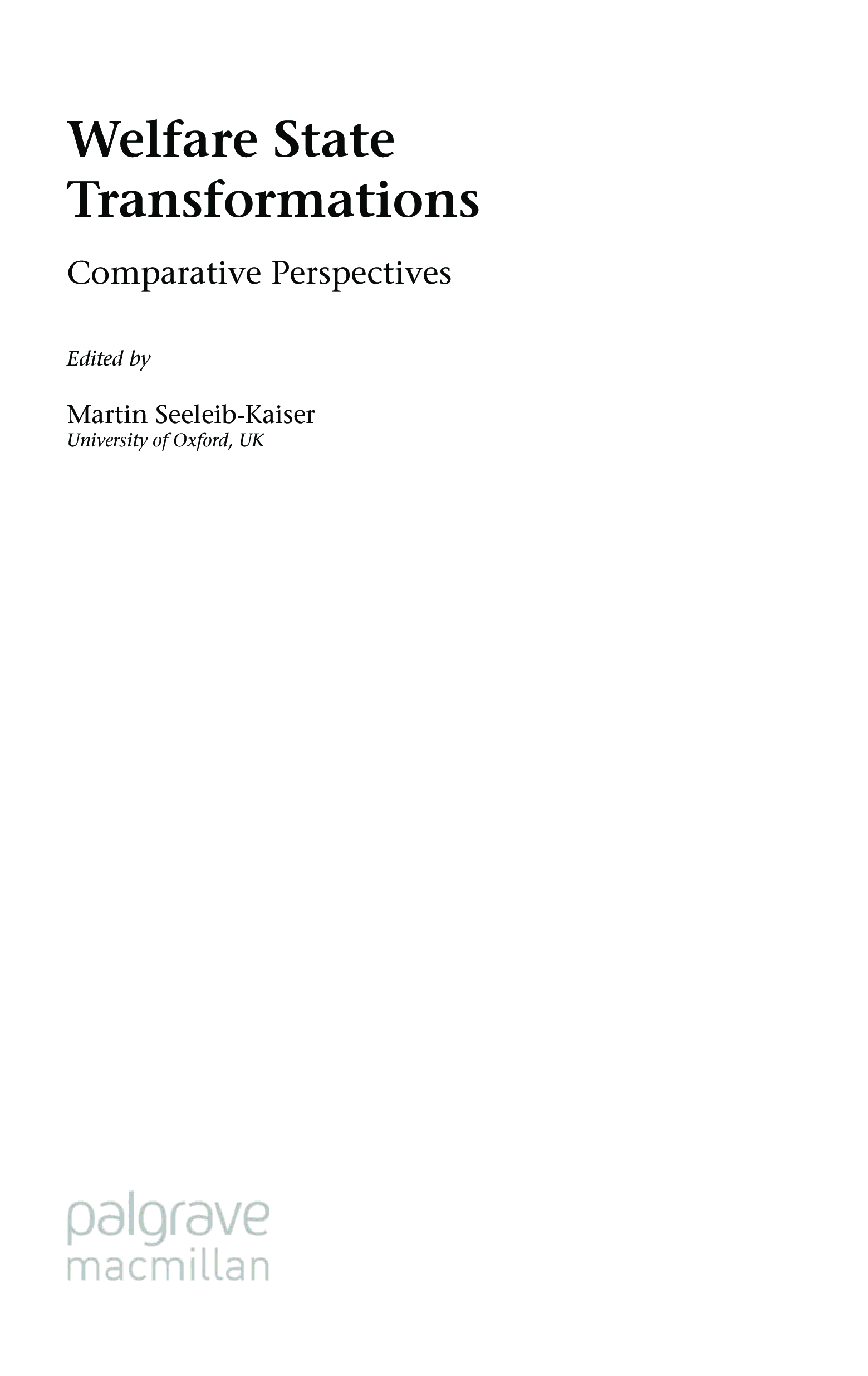 "Welfare State Transformations: Comparative Perspectives" - читать интересную книгу автора (Martin Seeleib-Kaiser)