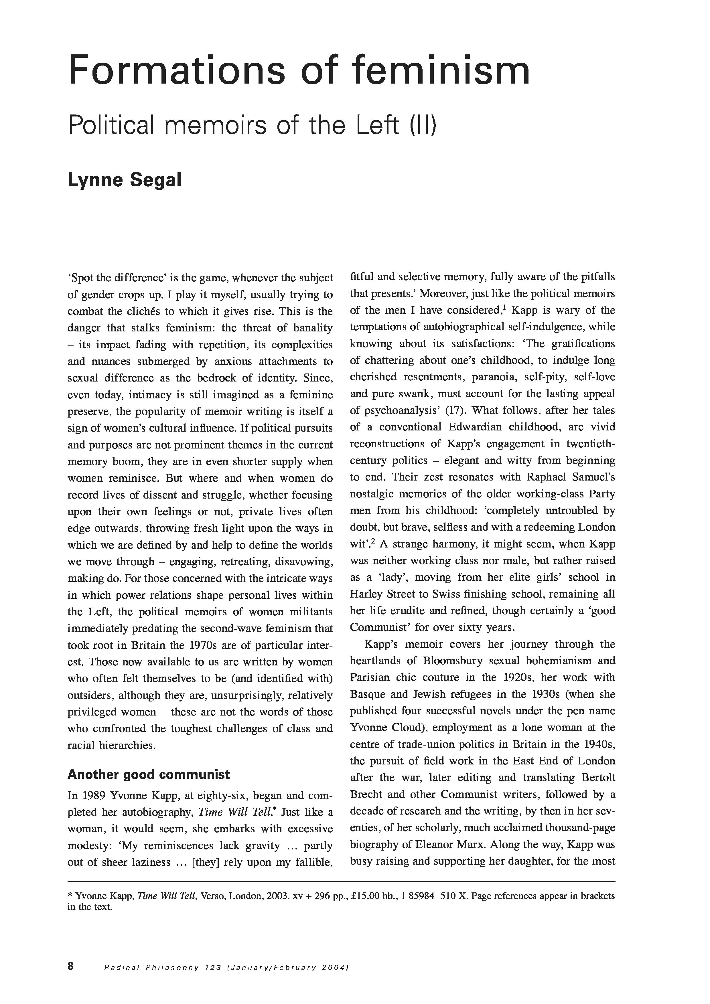 "Radical Philosophy #123" - читать интересную книгу автора