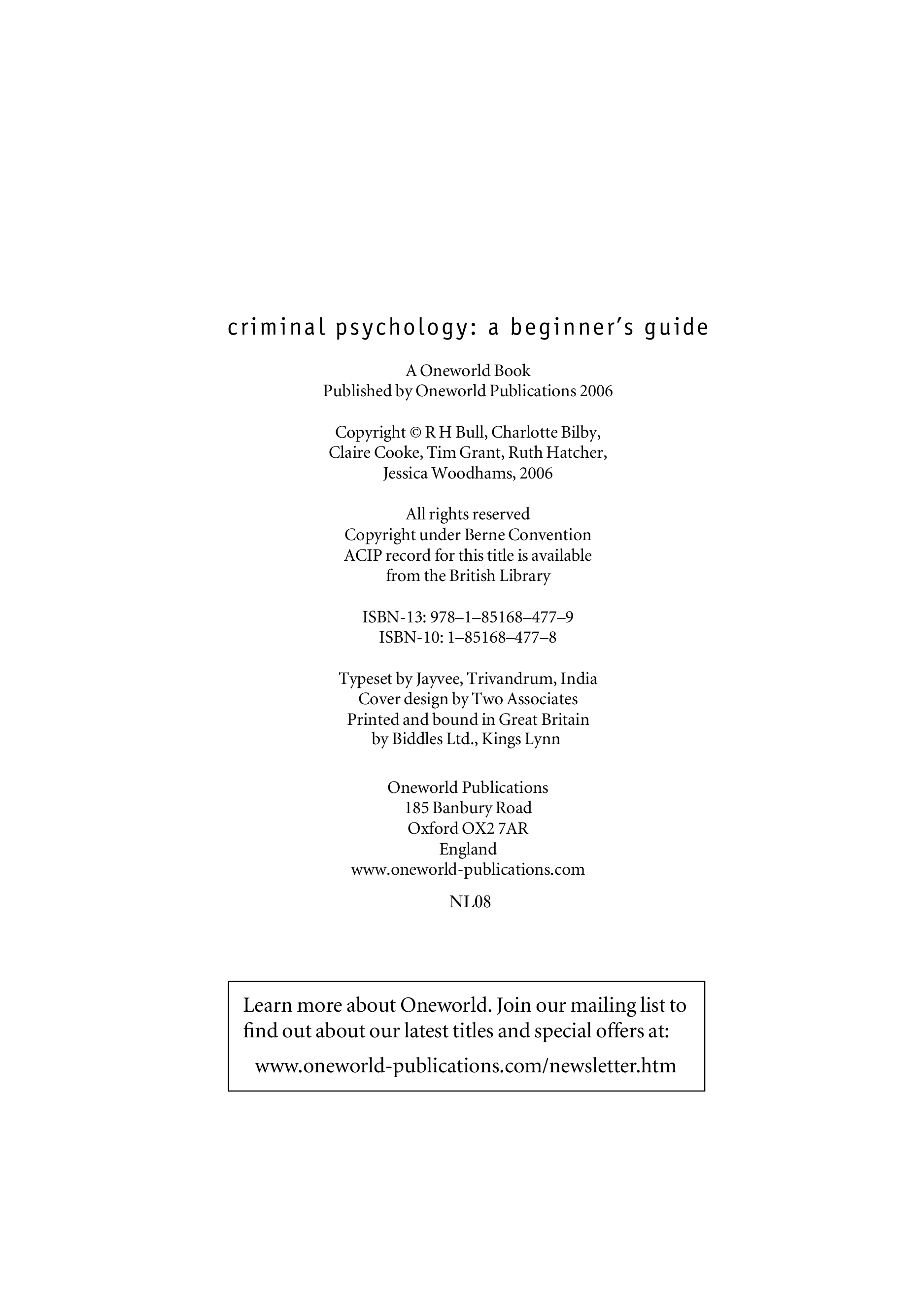 "Criminal Psychology: A Beginner's Guide (Beginner's Guides)" - читать интересную книгу автора