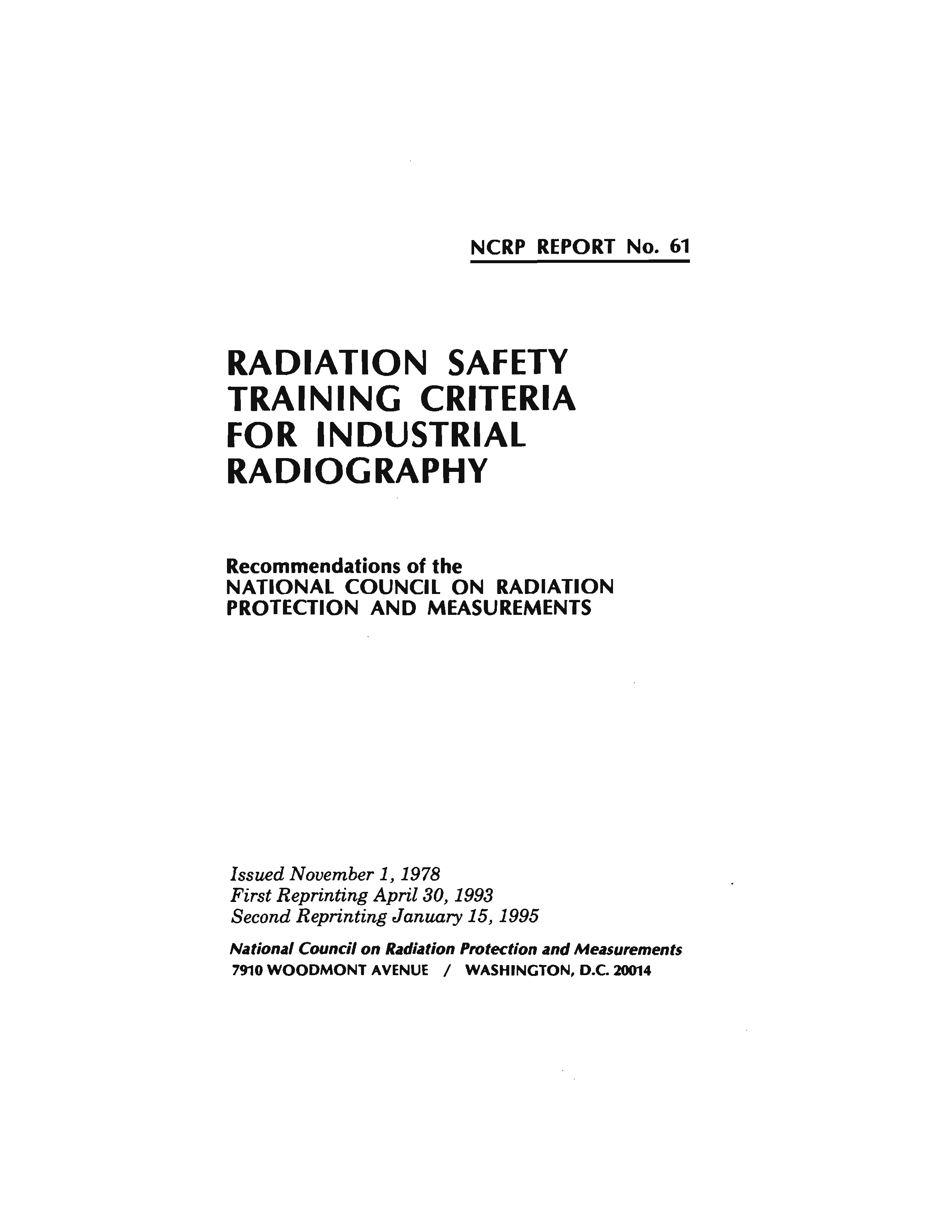 "Radiation safety training criteria for industrial radiography: Recommendations of the National Council on Radiation Protection and Measurements (NCRP report ; no. 61)" - читать интересную книгу автора