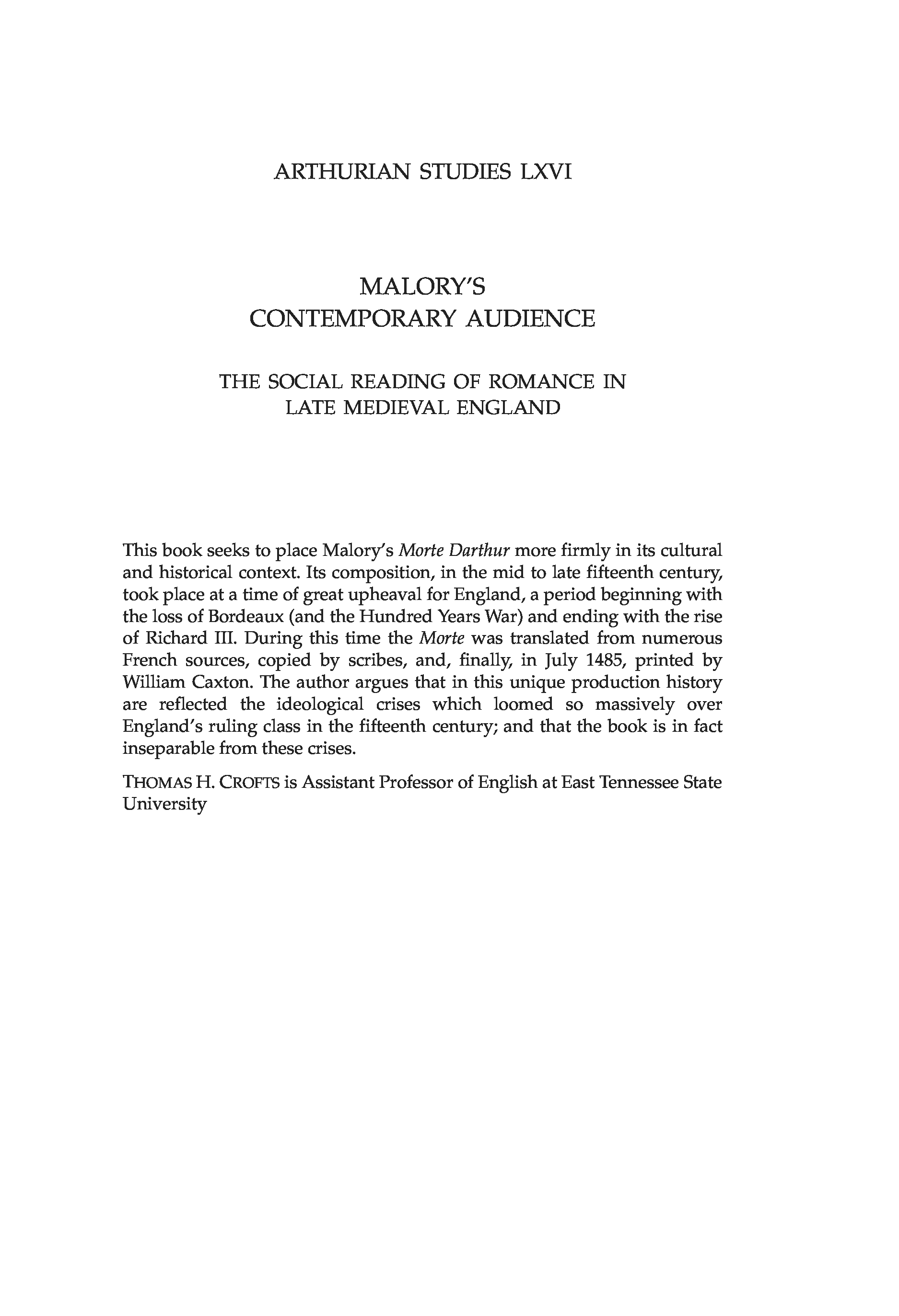 "Malory's Contemporary Audience: The Social Reading of Romance in Late Medieval England (Arthurian Studies)" - читать интересную книгу автора