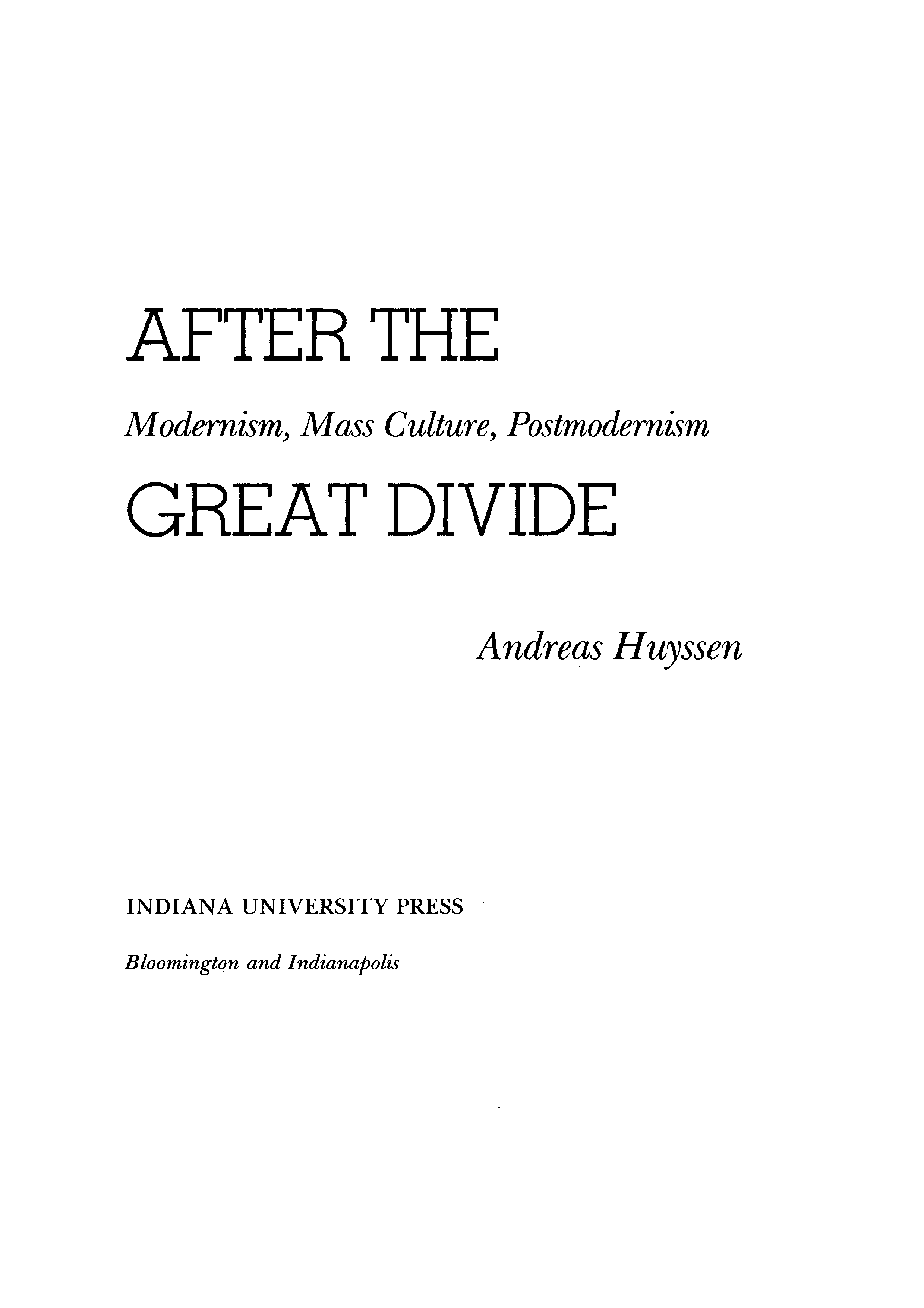 "After the Great Divide: Modernism, Mass Culture, Postmodernism (Theories of Representation and Difference)" - читать интересную книгу автора