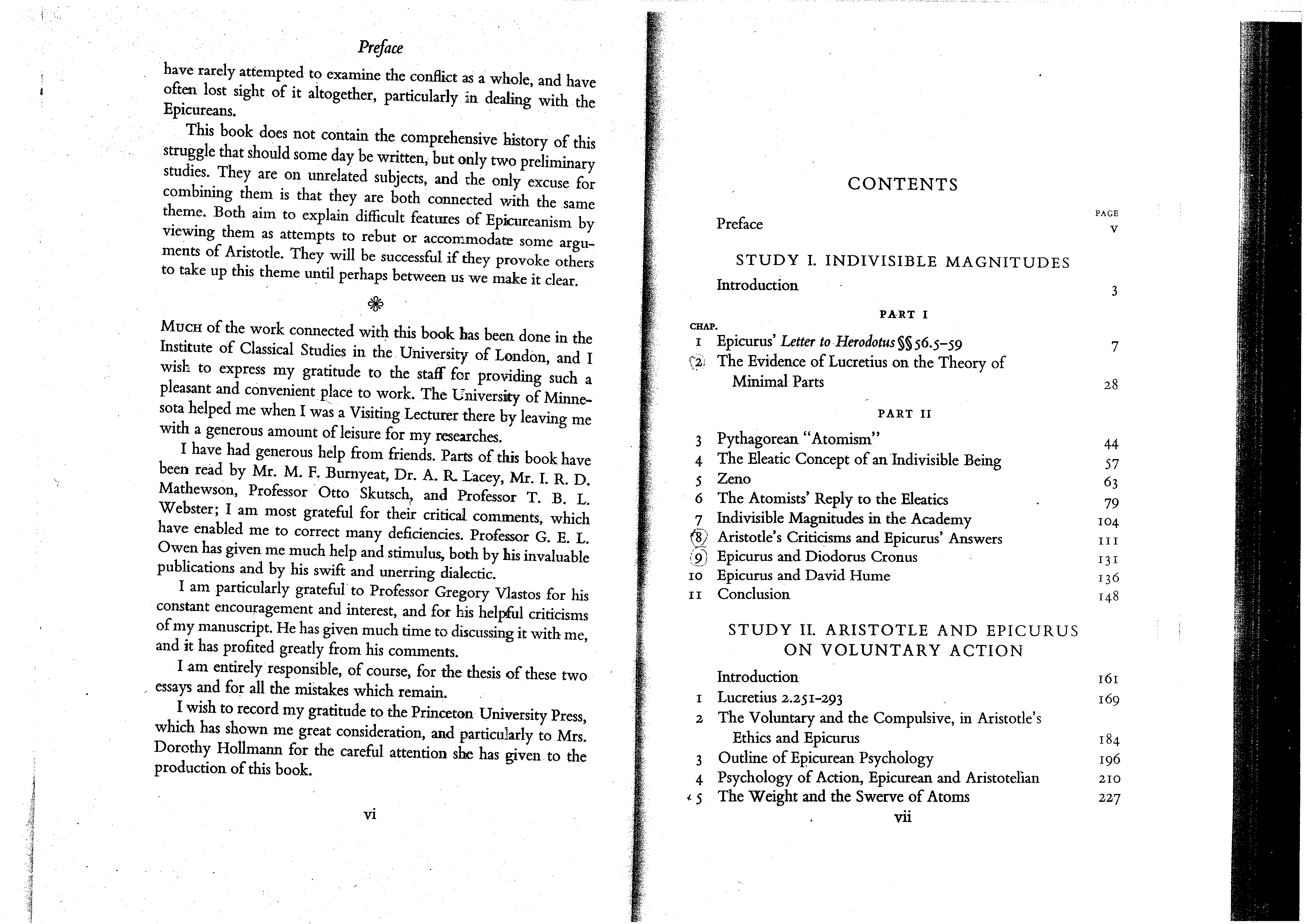 "Two Studies in the Greek Atomists: I. Indivisible Magnitudes. II. Aristotle and Epicurus on Voluntary Action" - читать интересную книгу автора