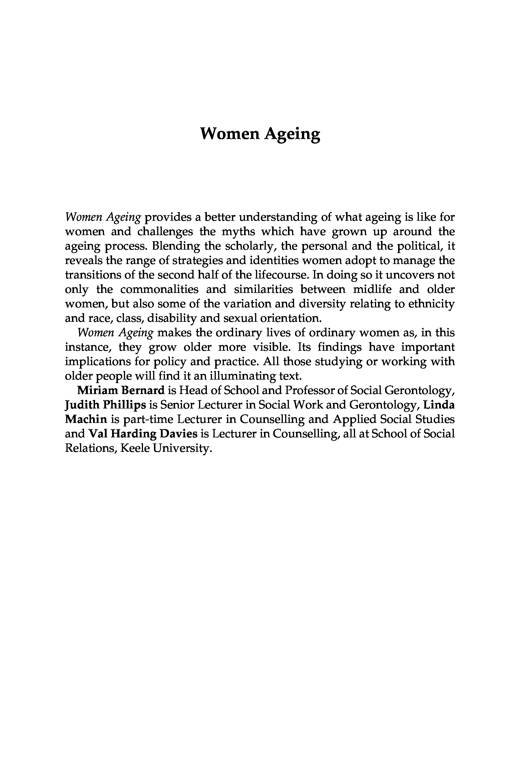 "Women Ageing: Changing Identities, Challenging Myths" - читать интересную книгу автора