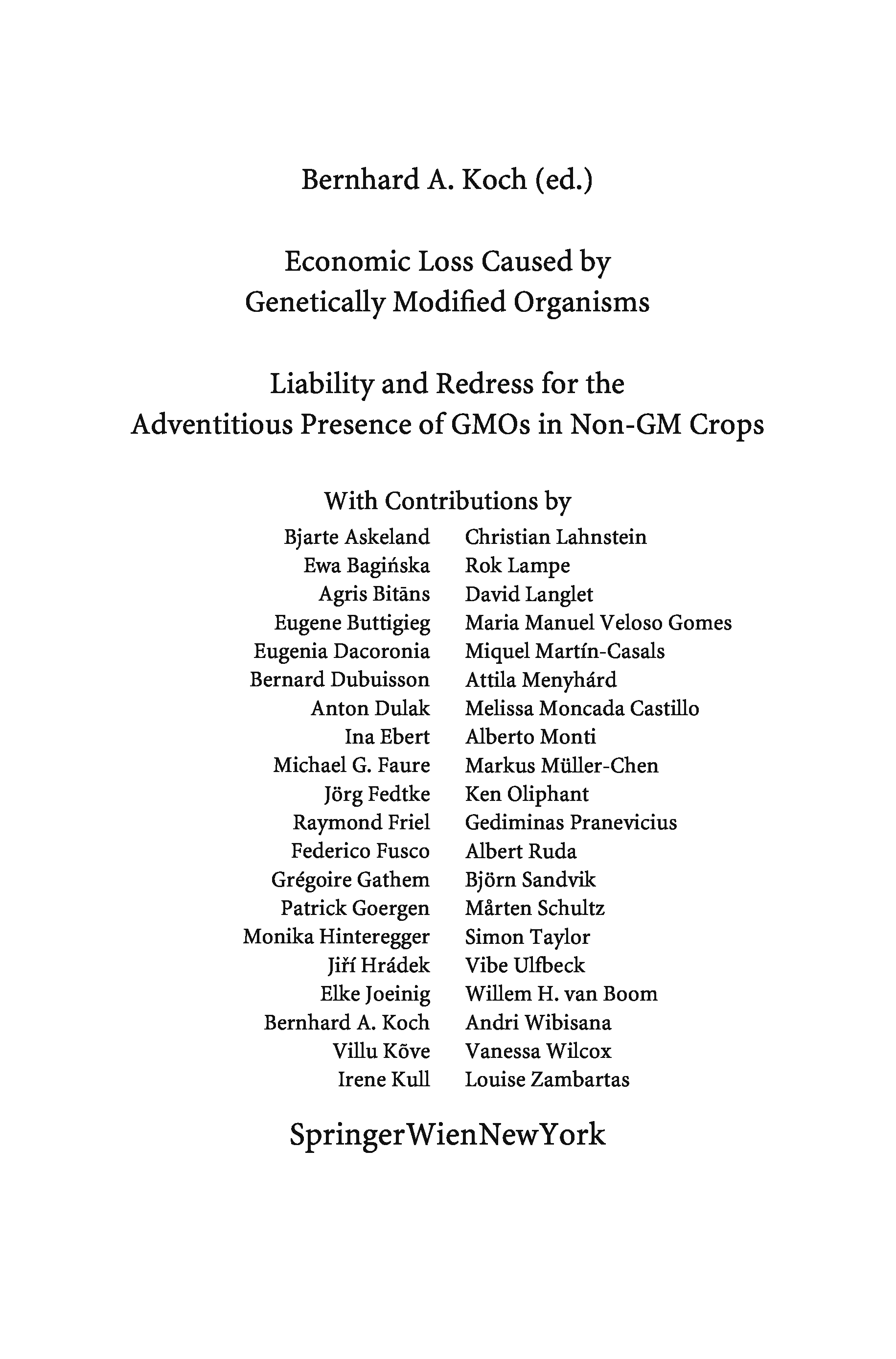 "Economic Loss Caused by Genetically Modified Organisms: Liability and Redress for the Adventitious Presence of GMOs in Non-GM Crops (Tort and Insurance Law)" - читать интересную книгу автора