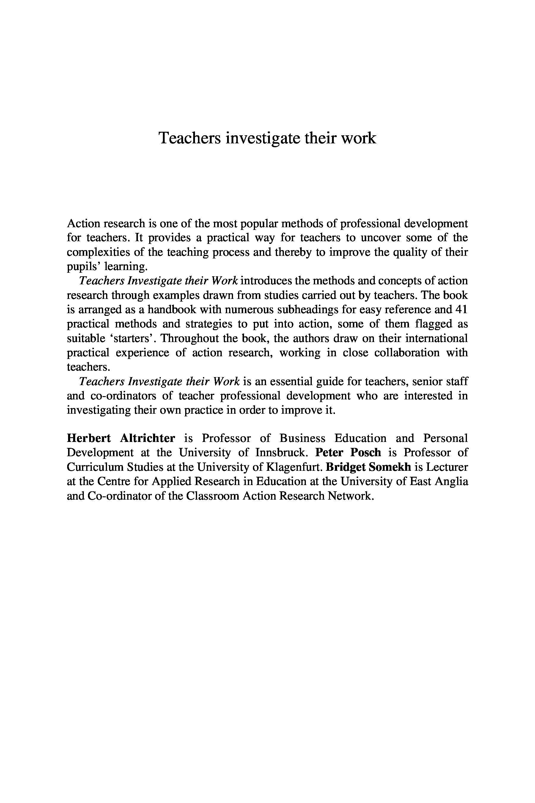 (Herbert Altrichter; Peter Posch; Bridget Somekh)