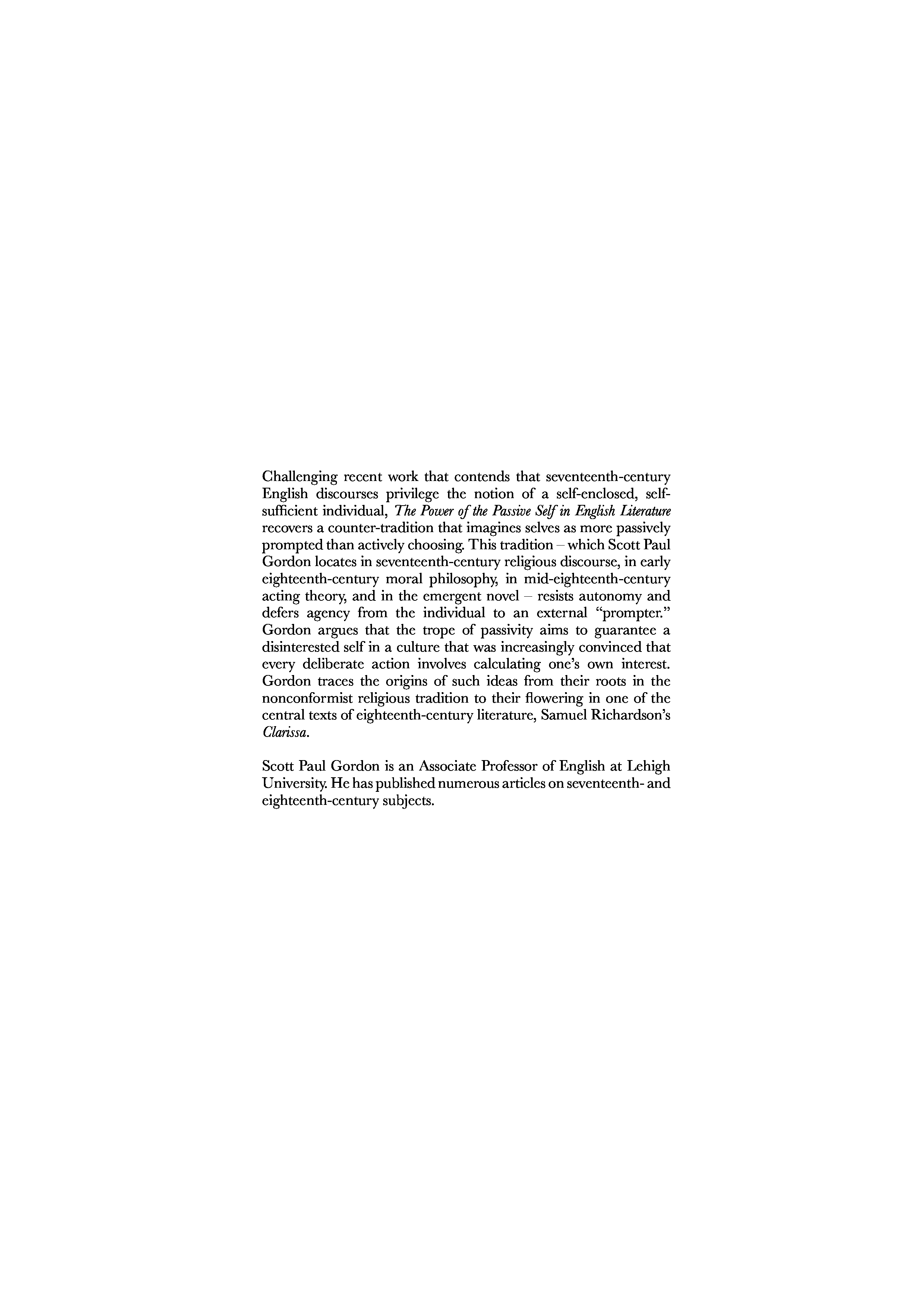 "The Power of the Passive Self in English Literature, 1640-1770" - читать интересную книгу автора