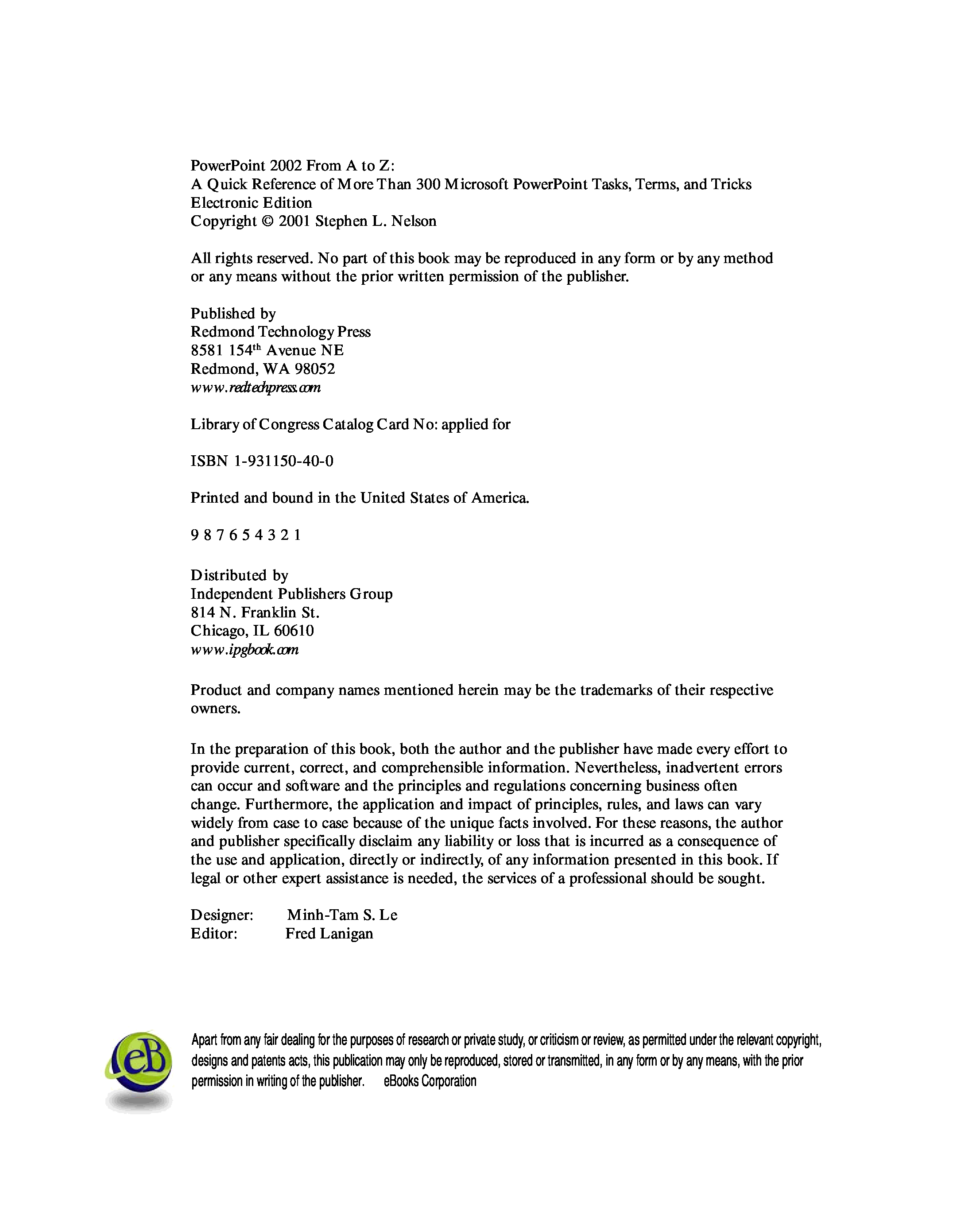 "PowerPoint 2002 from A to Z: A Quick Reference of More Than 300 Microsoft PowerPoint Tasks, Terms, and Tricks" - читать интересную книгу автора