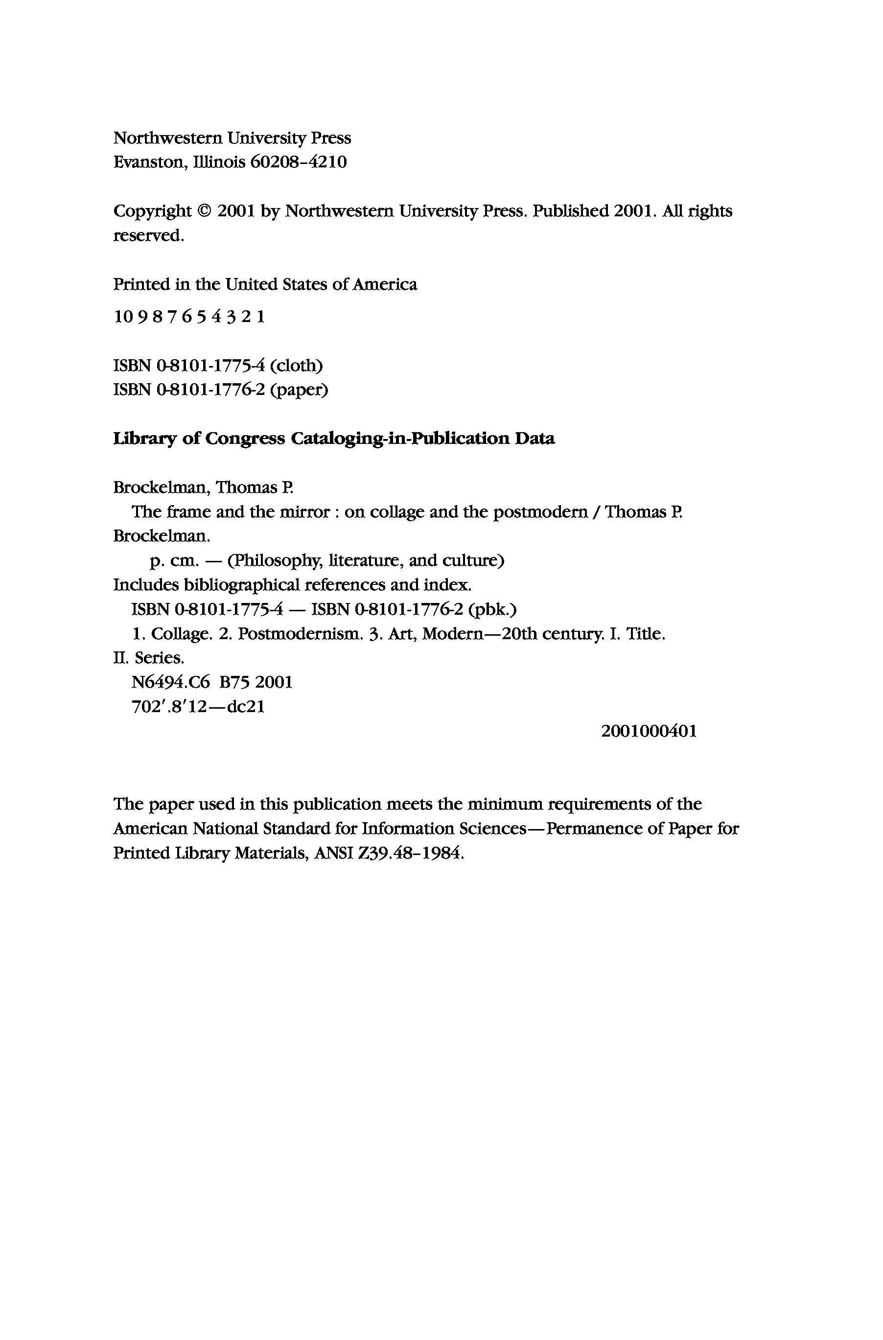 "The Frame and the Mirror: On Collage and Postmodernism (Philosophy, Literature and Culture)" - читать интересную книгу автора