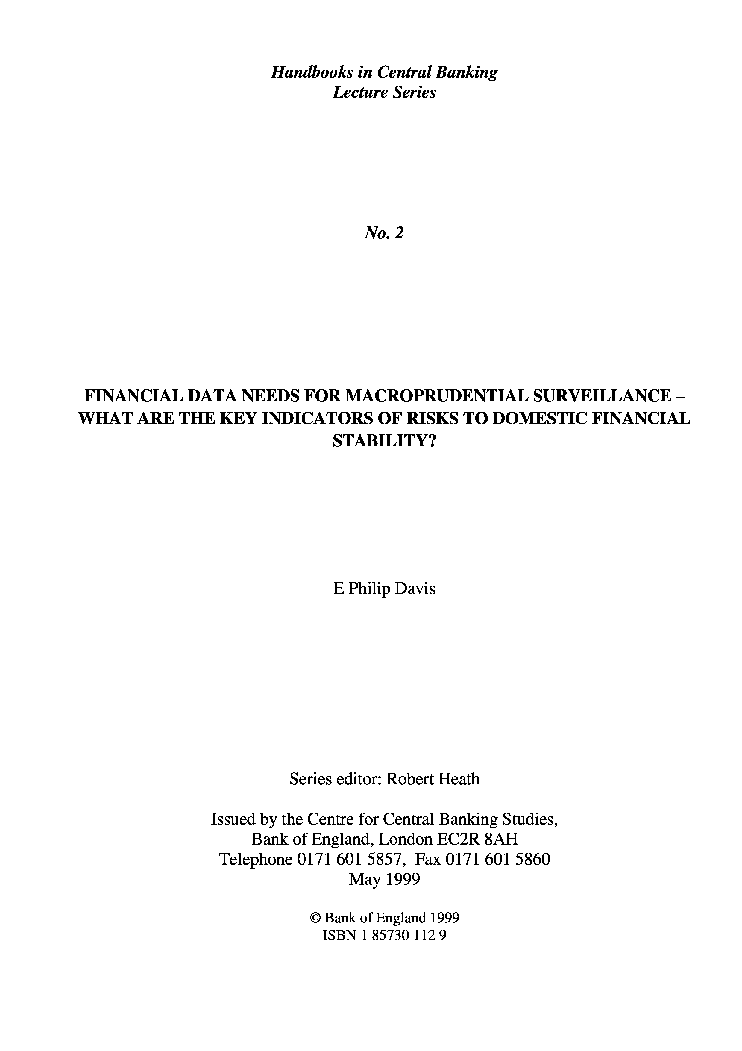 "Financial Data Needs for Macroprudential Surveillance: What Are the Key Indicators of Risk to Domestic Financial Stability? (Handbooks in central banking lecture series)" - читать интересную книгу автора