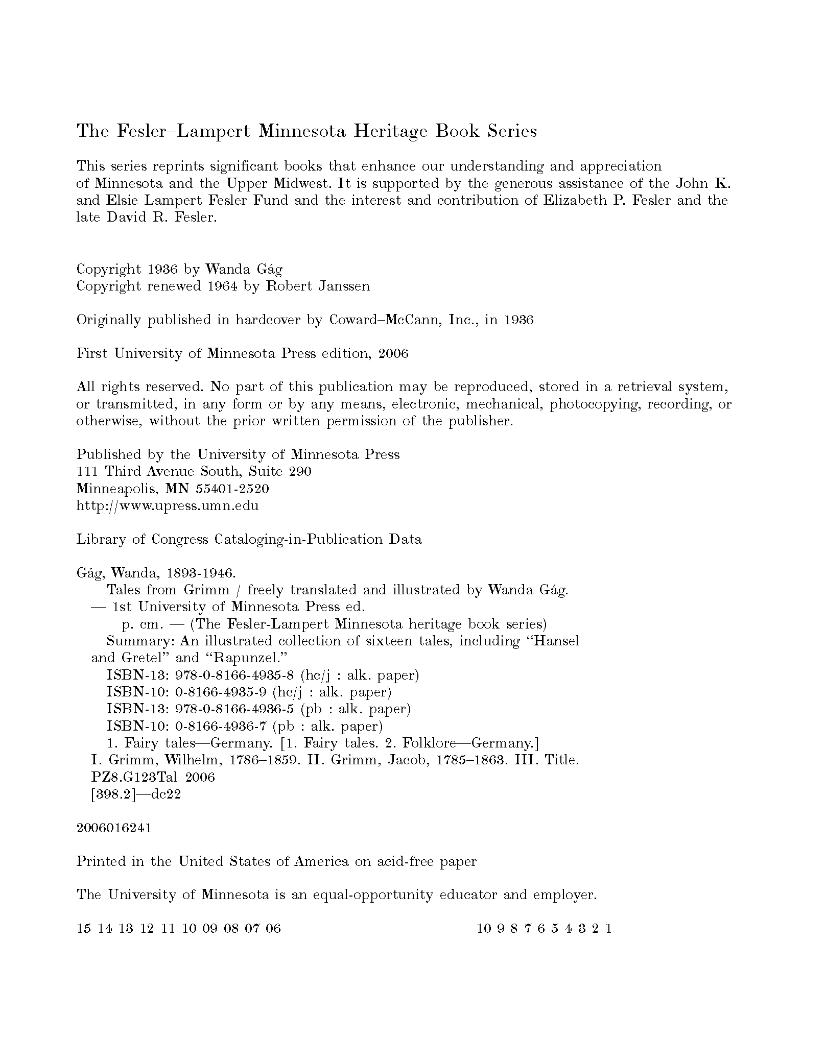 "Tales from Grimm (Fesler-Lampert Minnesota Heritage)" - читать интересную книгу автора