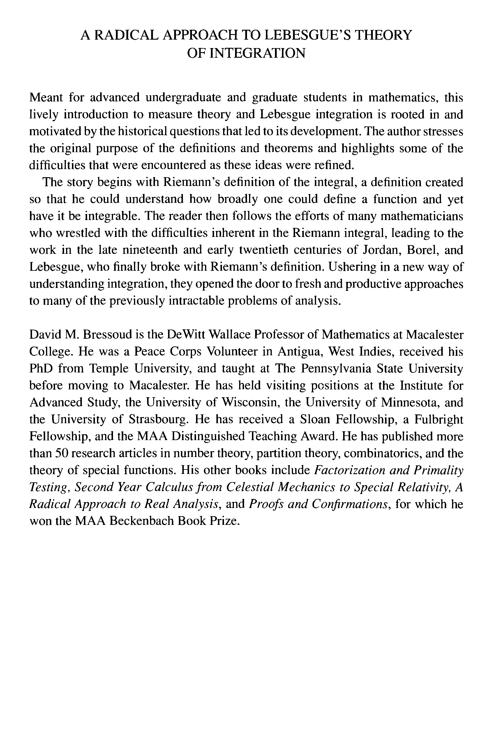 (David M. Bressoud)