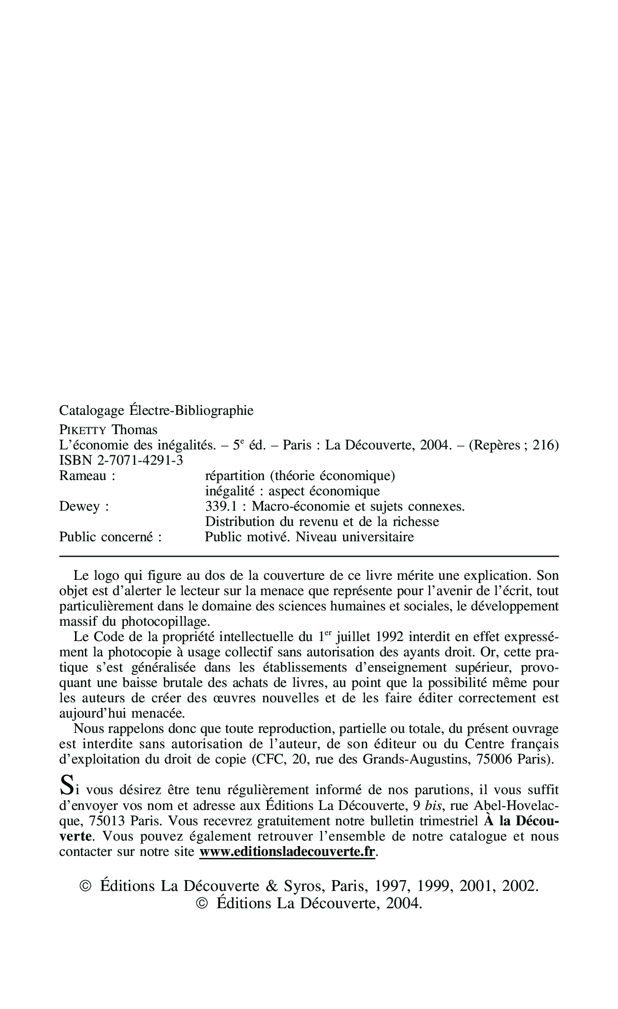 "L'economie des inegalites" - читать интересную книгу автора (Thomas Piketty)