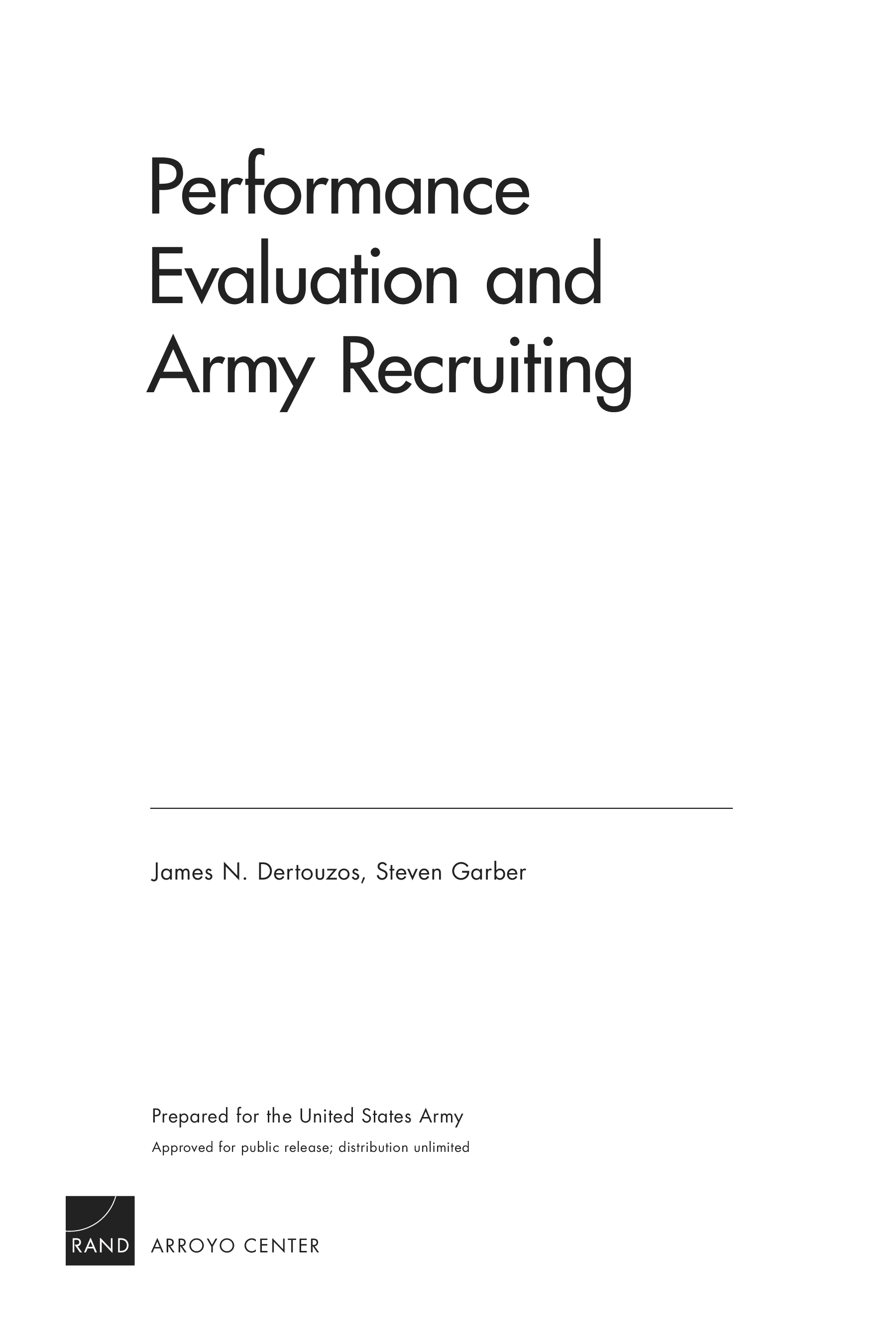 "Performance Evaluation and Army Recruiting (Rand Corporation Monograph)" - читать интересную книгу автора
