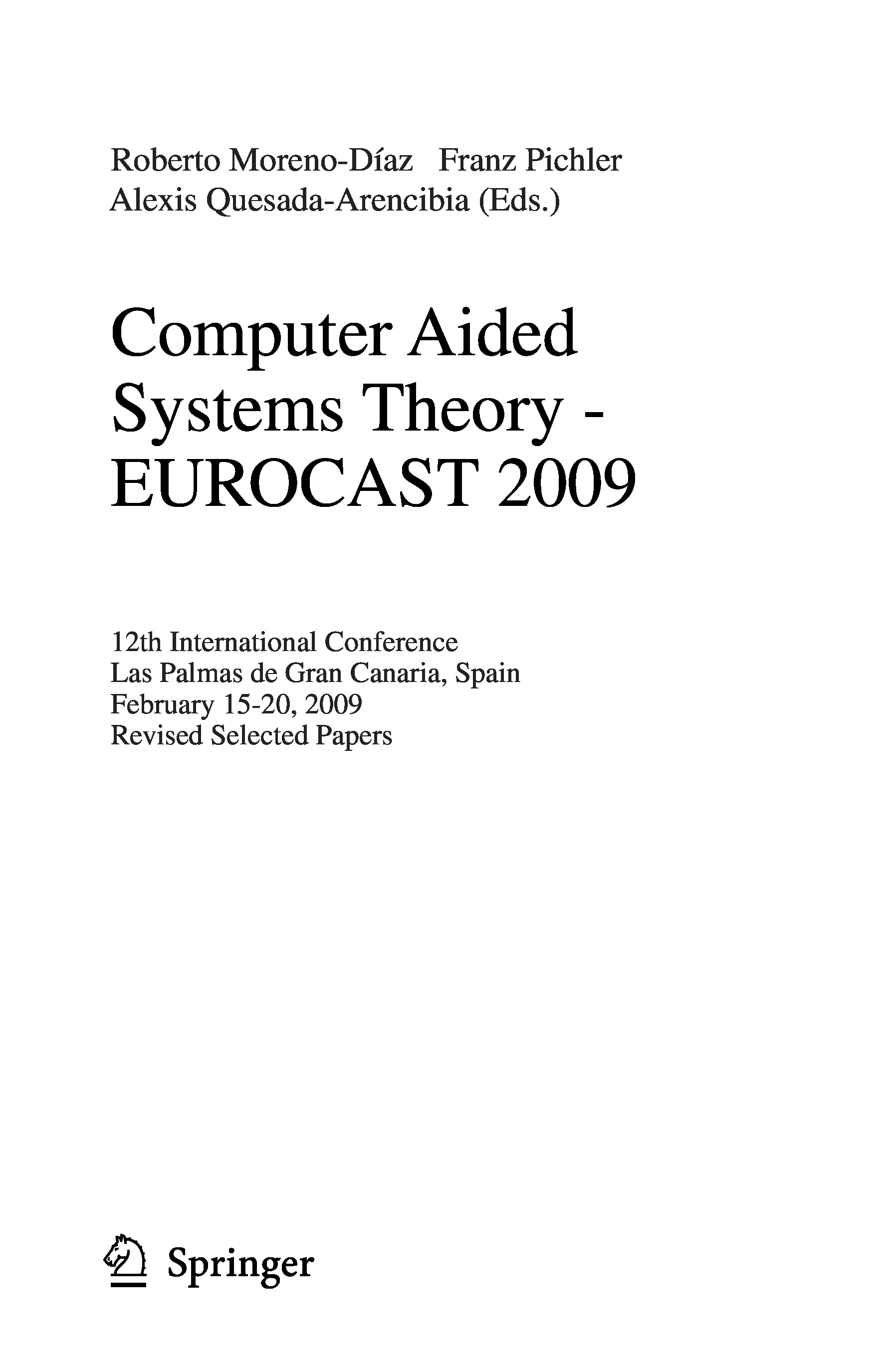 "Computer Aided Systems Theory - EUROCAST 2009: 12th International Conference on Computer Aided Systems Theory, Las Palmas de Gran Canaria, ... Computer Science and General Issues)" - читать интересную книгу автора (Roberto Moreno-Diaz, Franz Pichler, Alexis Quesada-Arencibia)