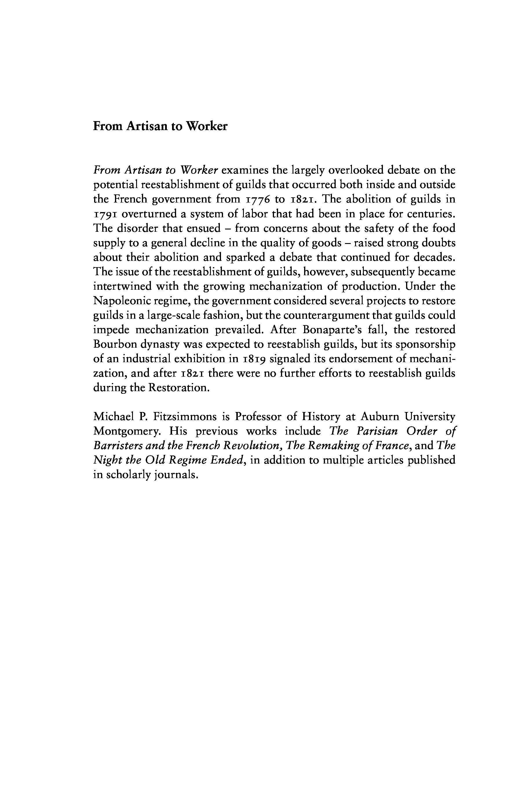 "From Artisan to Worker: Guilds, the French State, and the Organization of Labor, 1776-1821" - читать интересную книгу автора