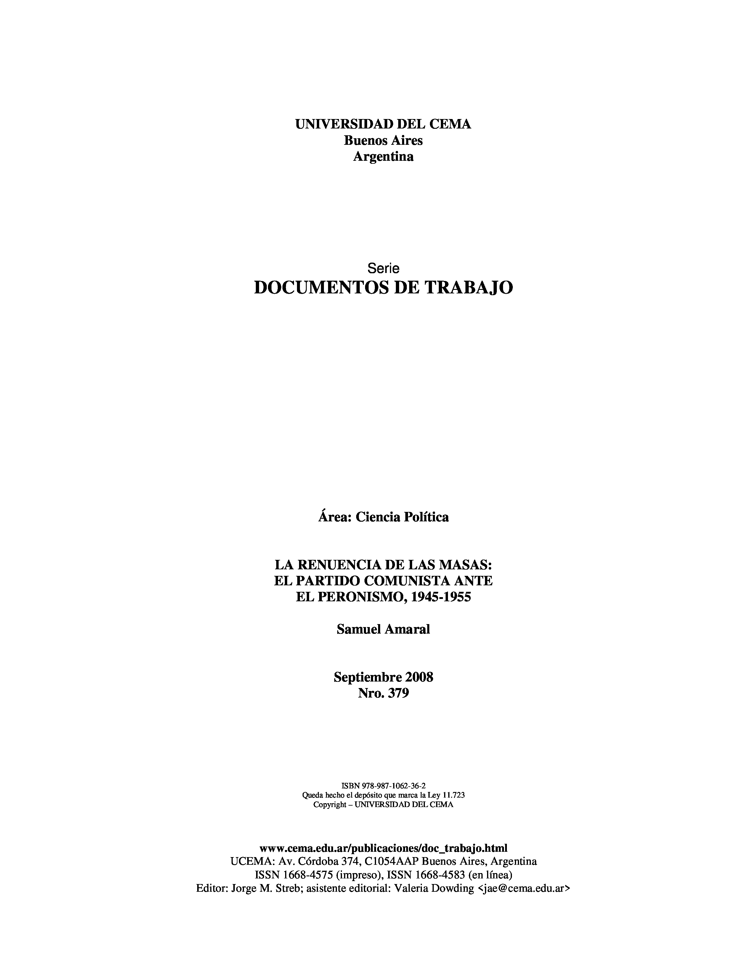 "La renuencia de las masas : el partido comunista ante el peronismo 1945-1955" - читать интересную книгу автора