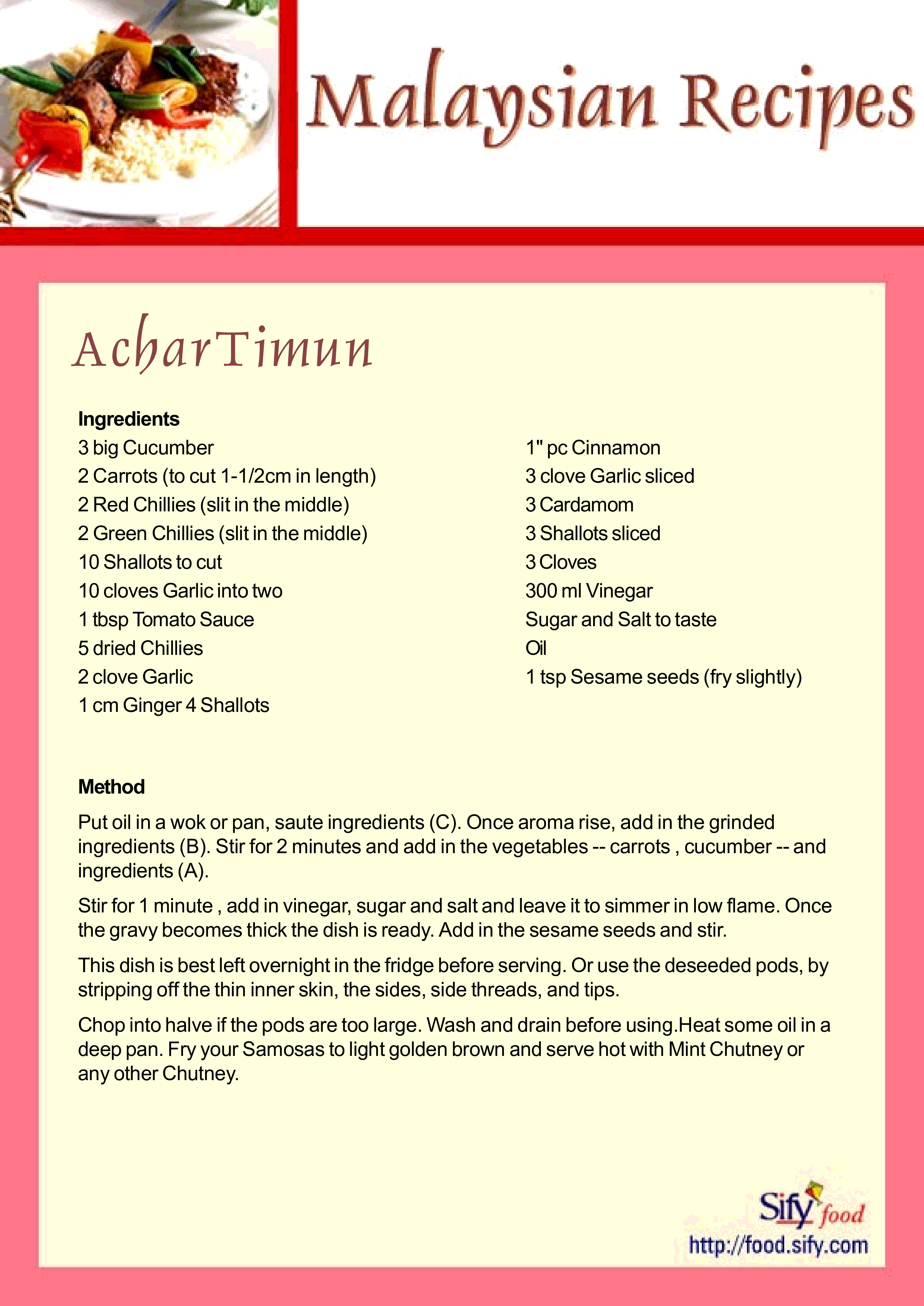 "Malaysian Recipes (Cookbook)" - читать интересную книгу автора (The Sify Food Contributors)