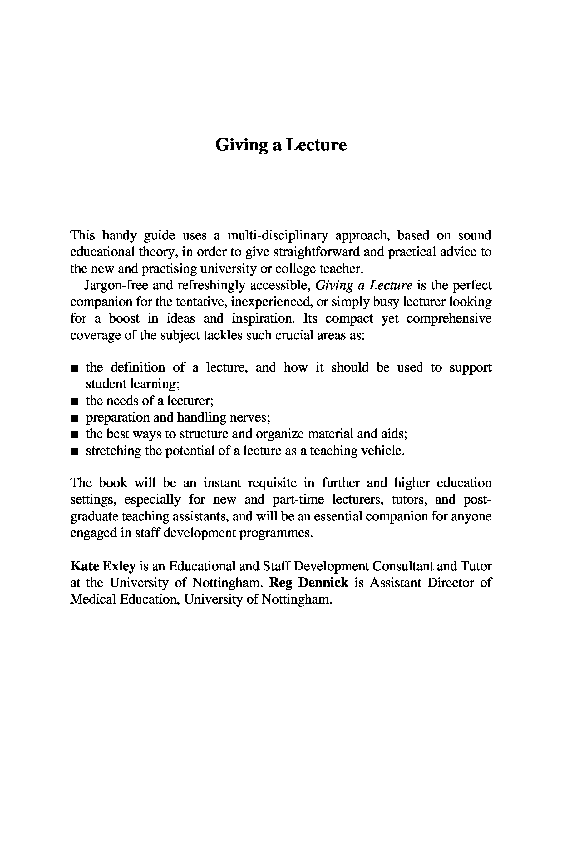 "Giving a Lecture: From Presenting to Teaching (Effective Teaching in Higher Education)" - читать интересную книгу автора