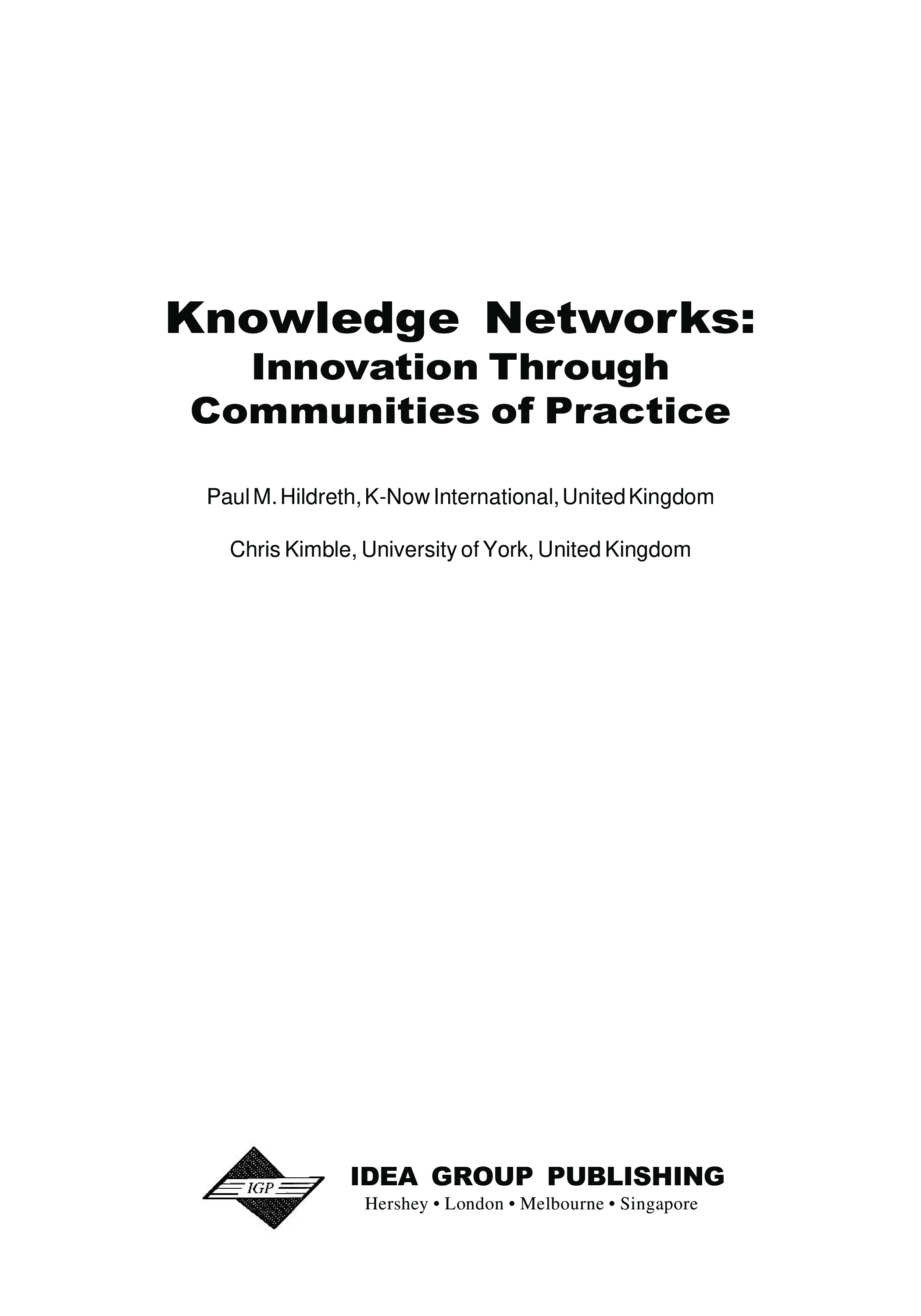 "Knowledge Networks: Innovation Through Communities of Practice" - читать интересную книгу автора