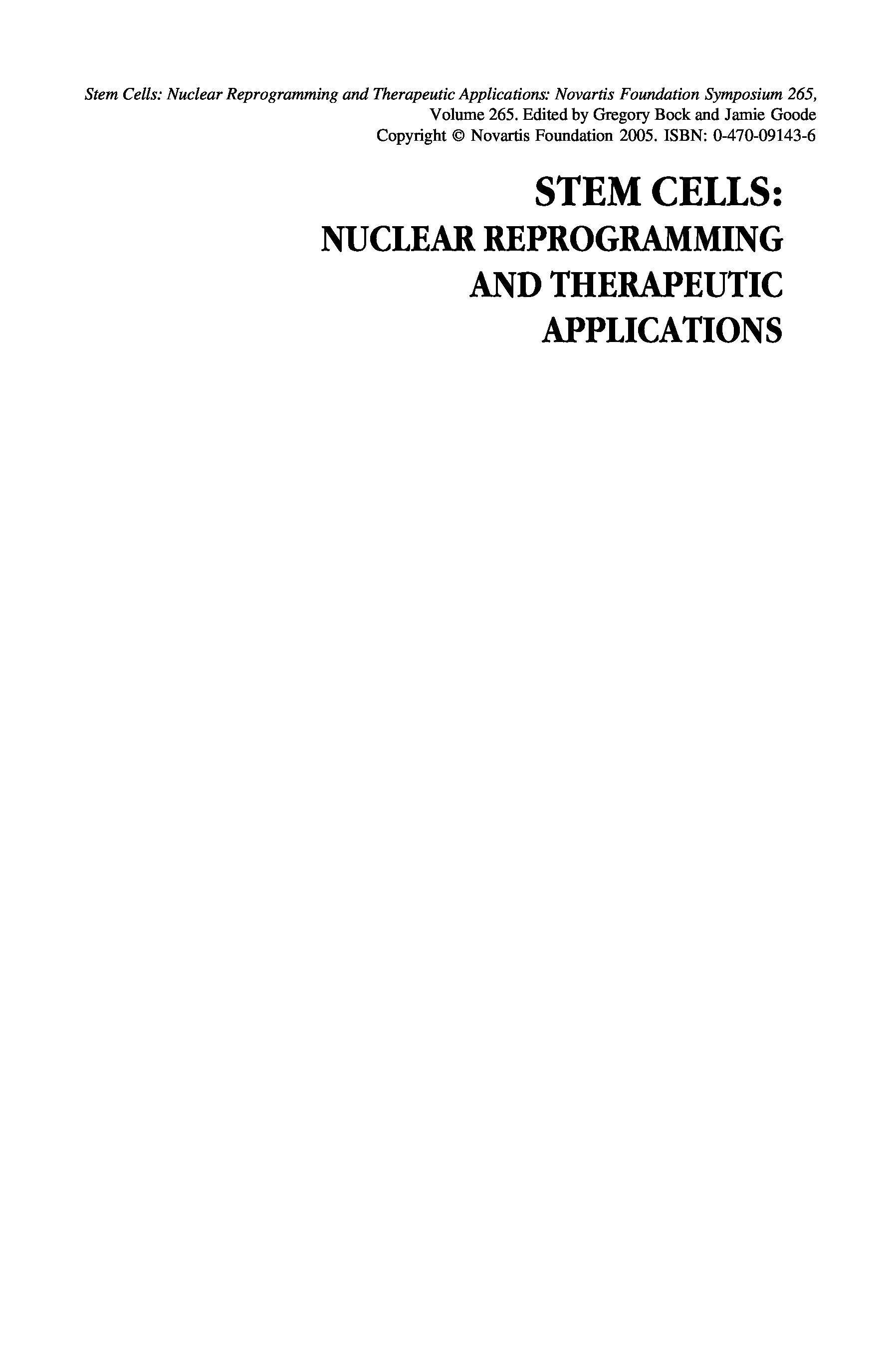 "Stem Cells - No. 265: Nuclear Reprogramming and Therapeutic Applications (CIBA Foundation Symposia Series)" - читать интересную книгу автора