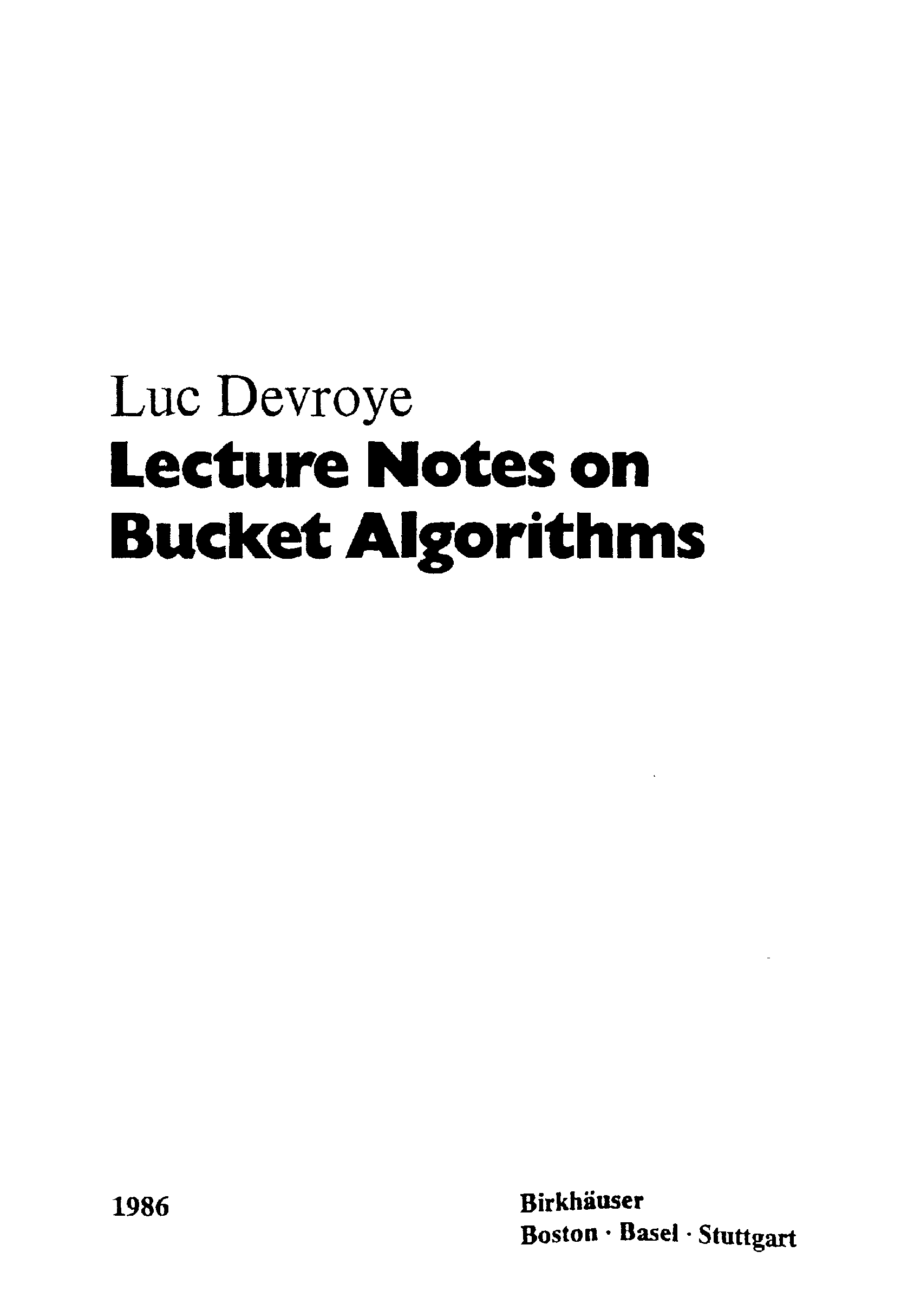 "Lecture Notes on Bucket Algorithms (Progress in Computer Science, No. 6)" - читать интересную книгу автора