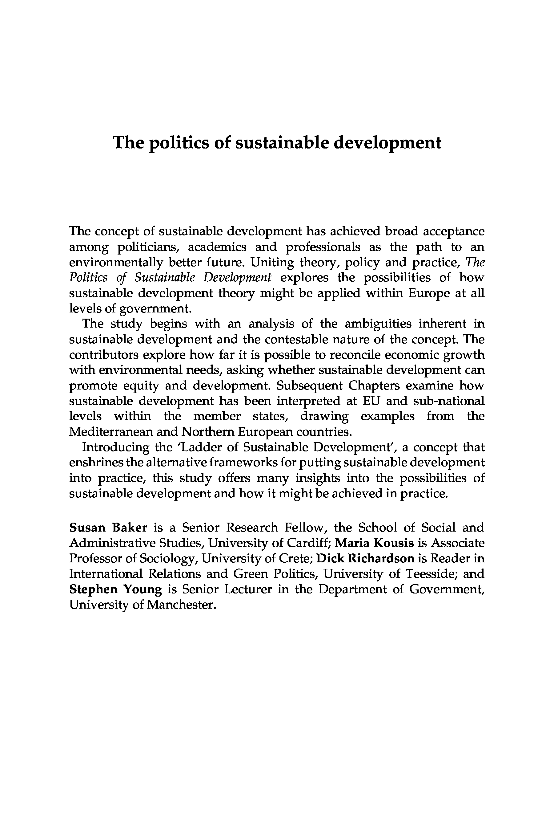 "The Politics of Sustainable Development: Theory, Policy, and Practice within the European Union (Global Environmental Change Series)" - читать интересную книгу автора