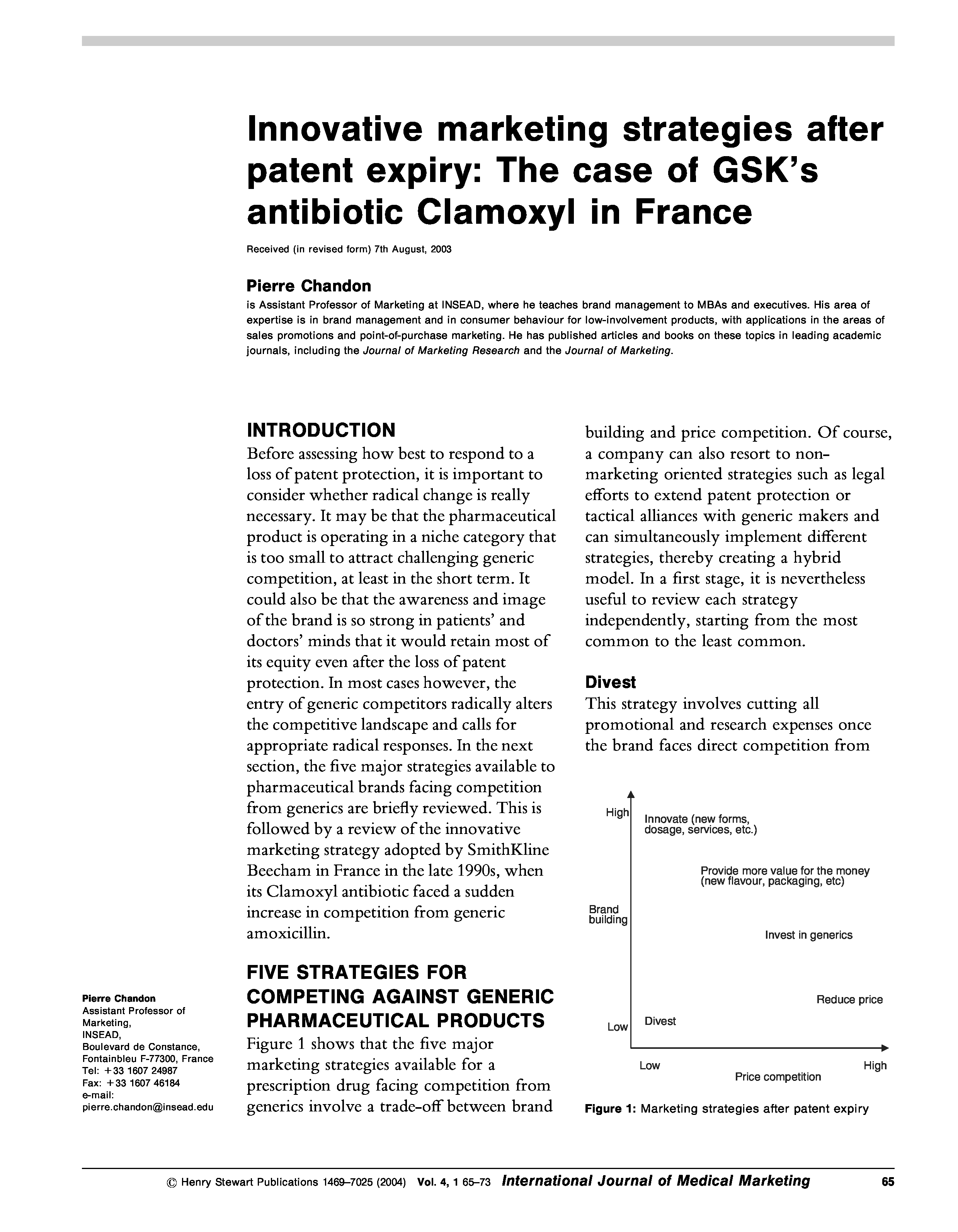 "Article-Innovative Marketing Strategies after Patent Expiry The case of Gsk-s Antibiotic Clamoxyl in France" - читать интересную книгу автора