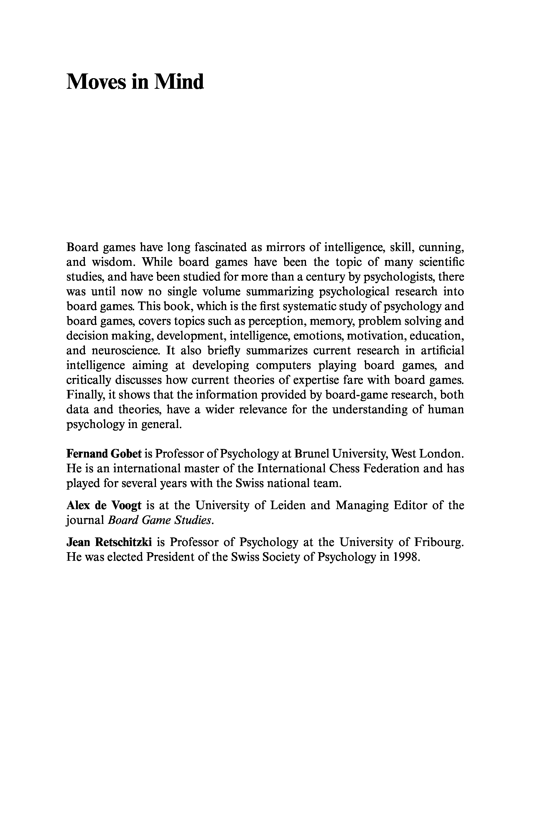 "Moves in Mind: The Psychology of Board Games" - читать интересную книгу автора